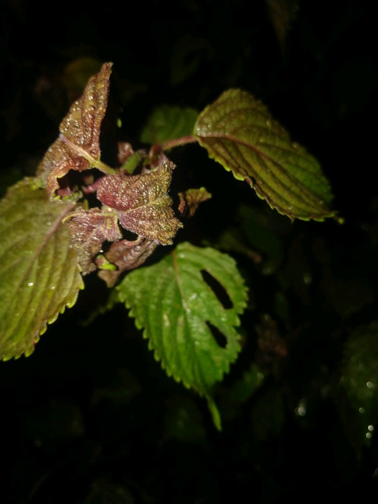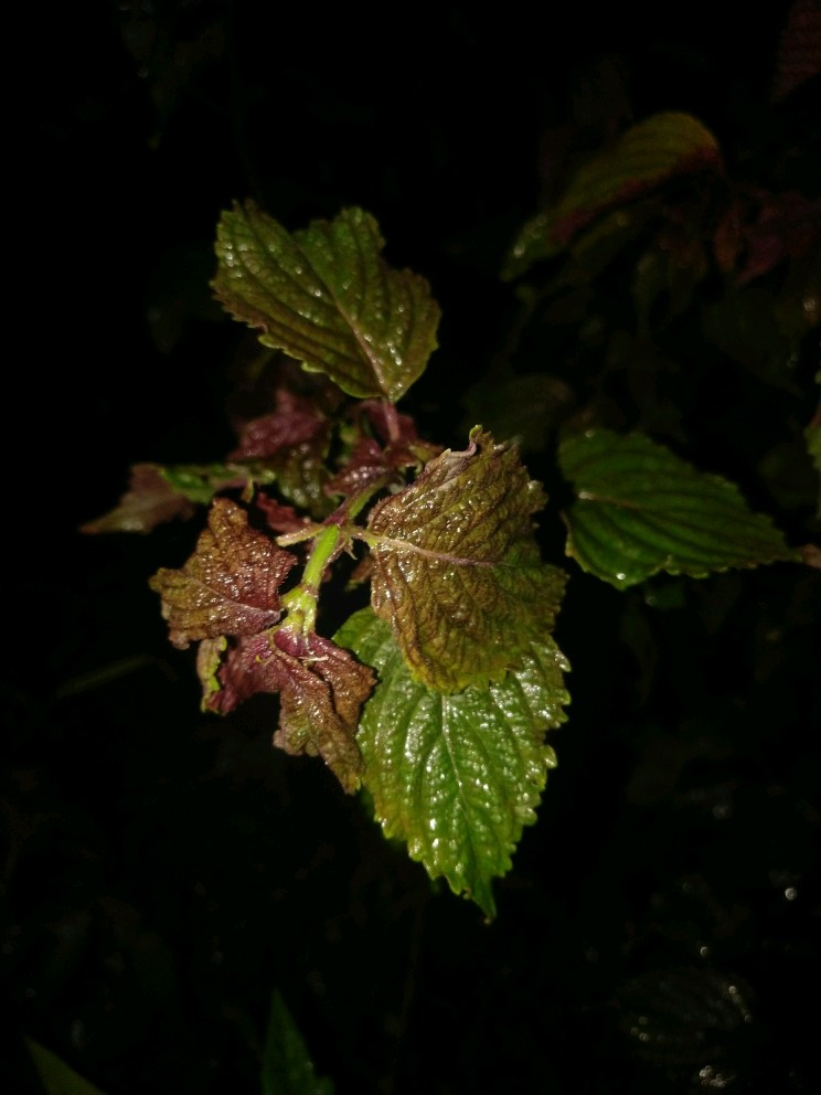下雨天拍的,觉得晚上拍紫苏叶挺好看的。😂