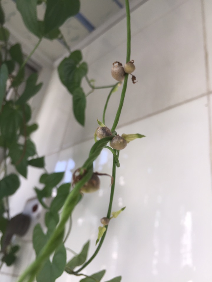遗忘在角落里的几根山药凭借本身的一点点水分出芽、盘旋,等我发现时几根黑褐色电线一样的茎已经顺着向上爬很高了,赶紧种土里、浇水,叶子长出来越来越远繁茂。还长了小小的山药豆。小阳台有了特殊的装饰。
