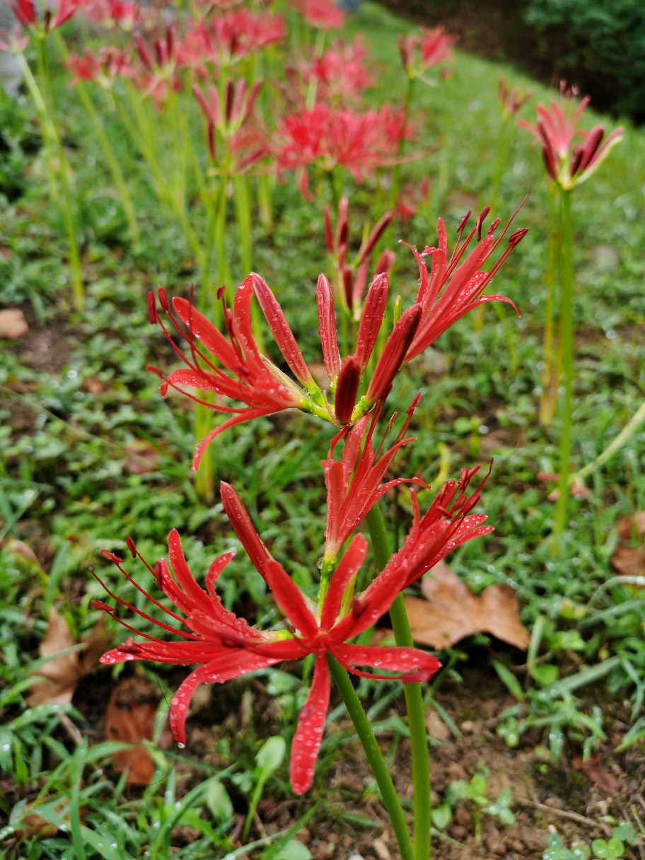 直到今天,才知道这就是传说中的彼岸花!彼岸花中文名石蒜花,梵语有个很美的名字——曼珠沙华,佛经有言:彼岸花,开一千年,落一千年,花叶永不相见。情不为因果,缘注定生死。寻寻觅觅、冷冷清清、凄凄惨惨戚戚,花叶互作无情物,了却世间许多情🥺