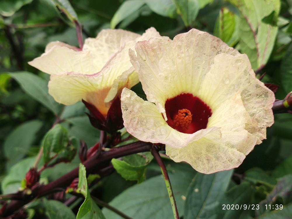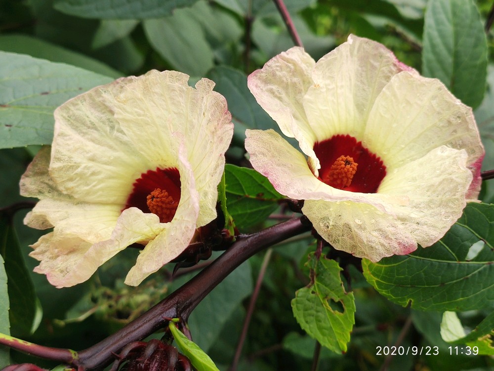 还是在去年的位置,还是有且只有两株玫瑰茄。