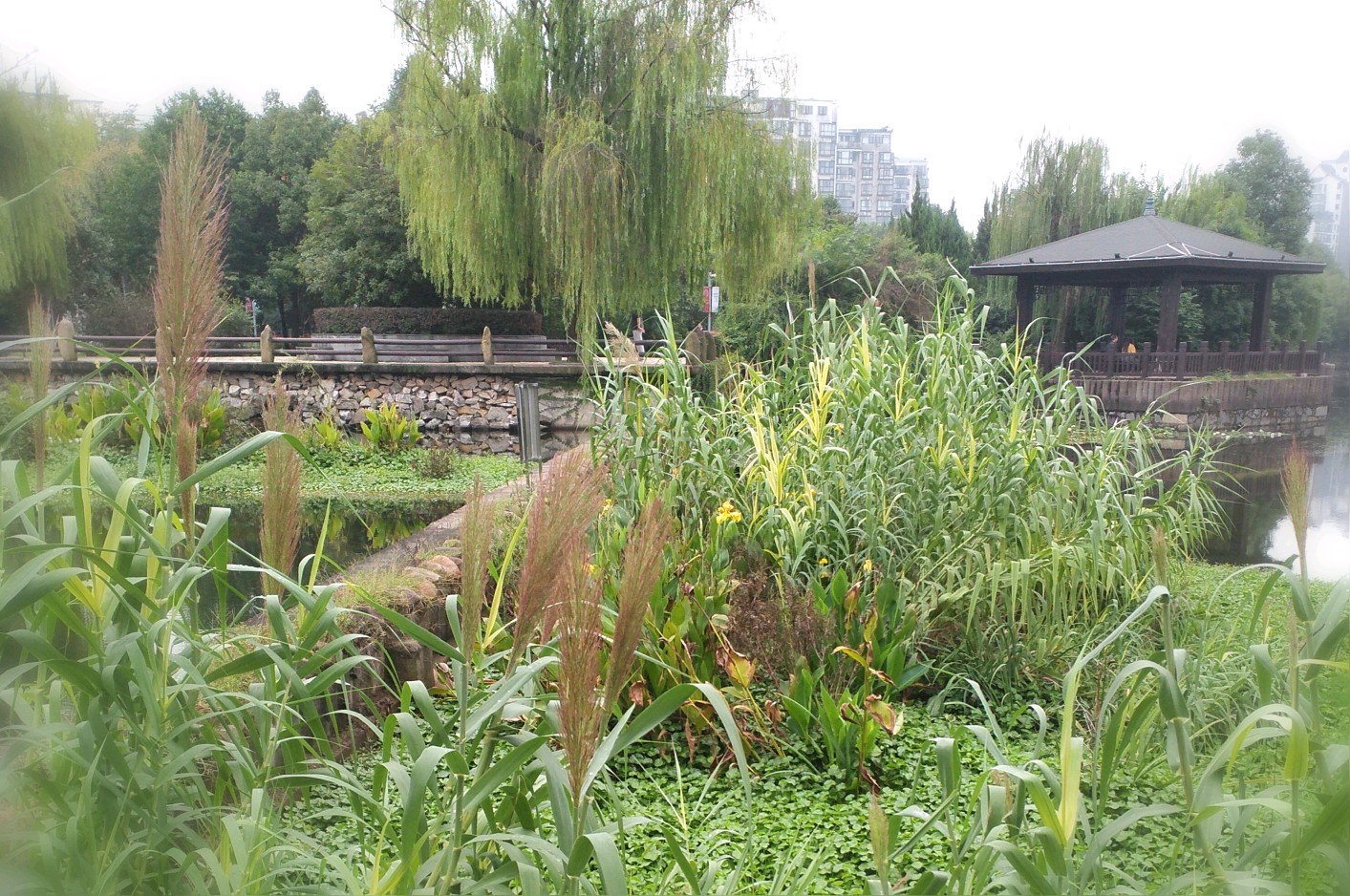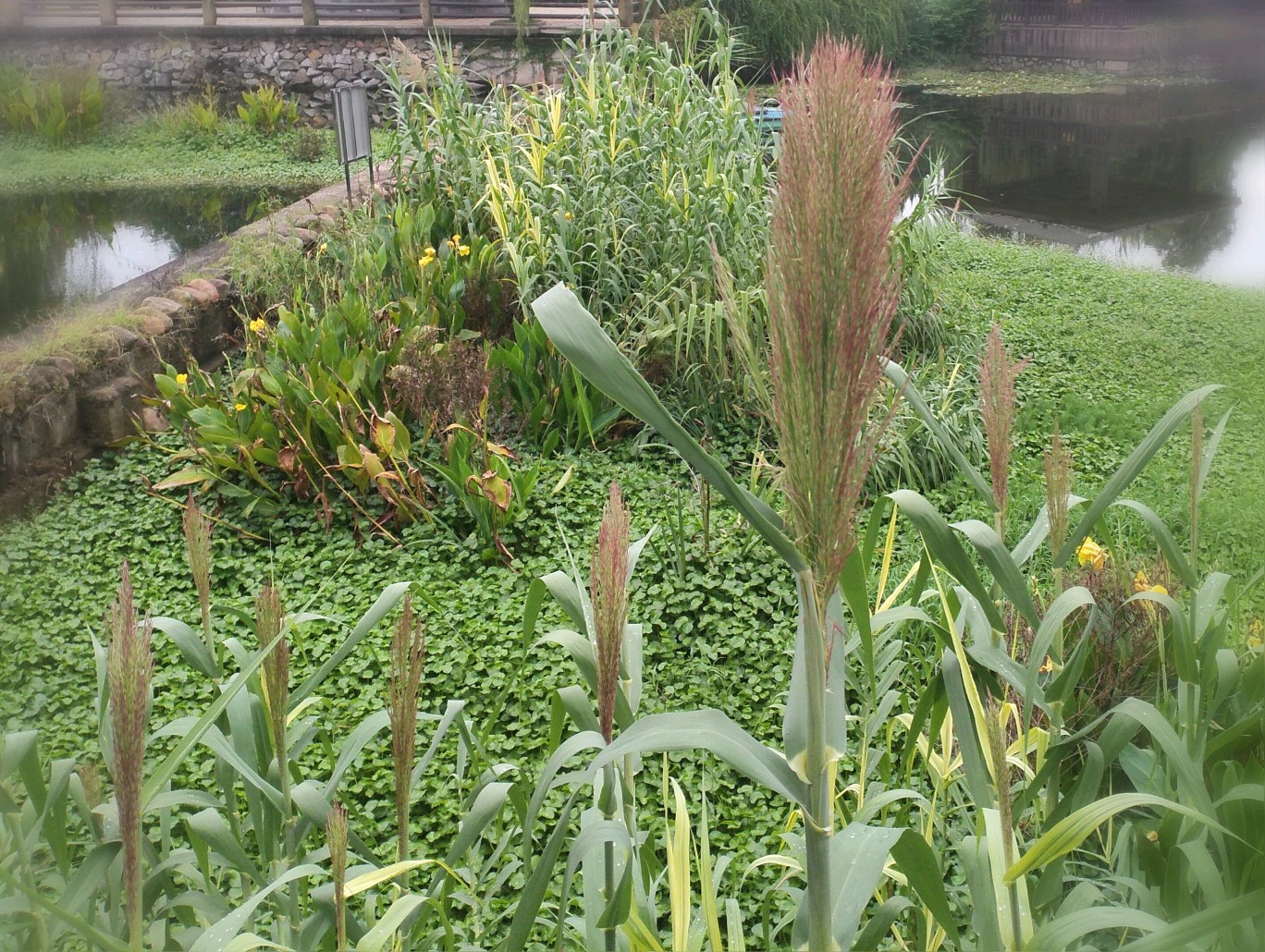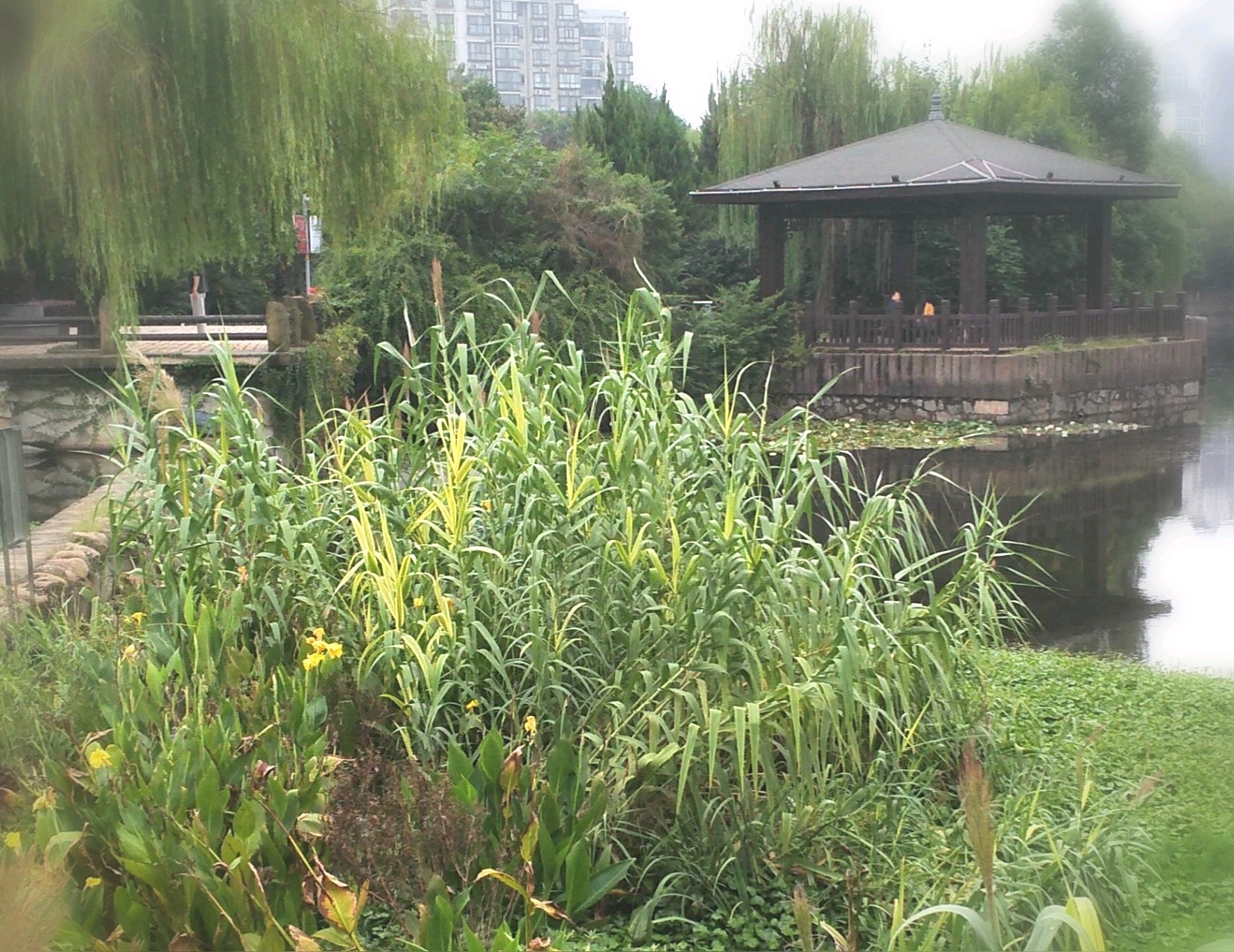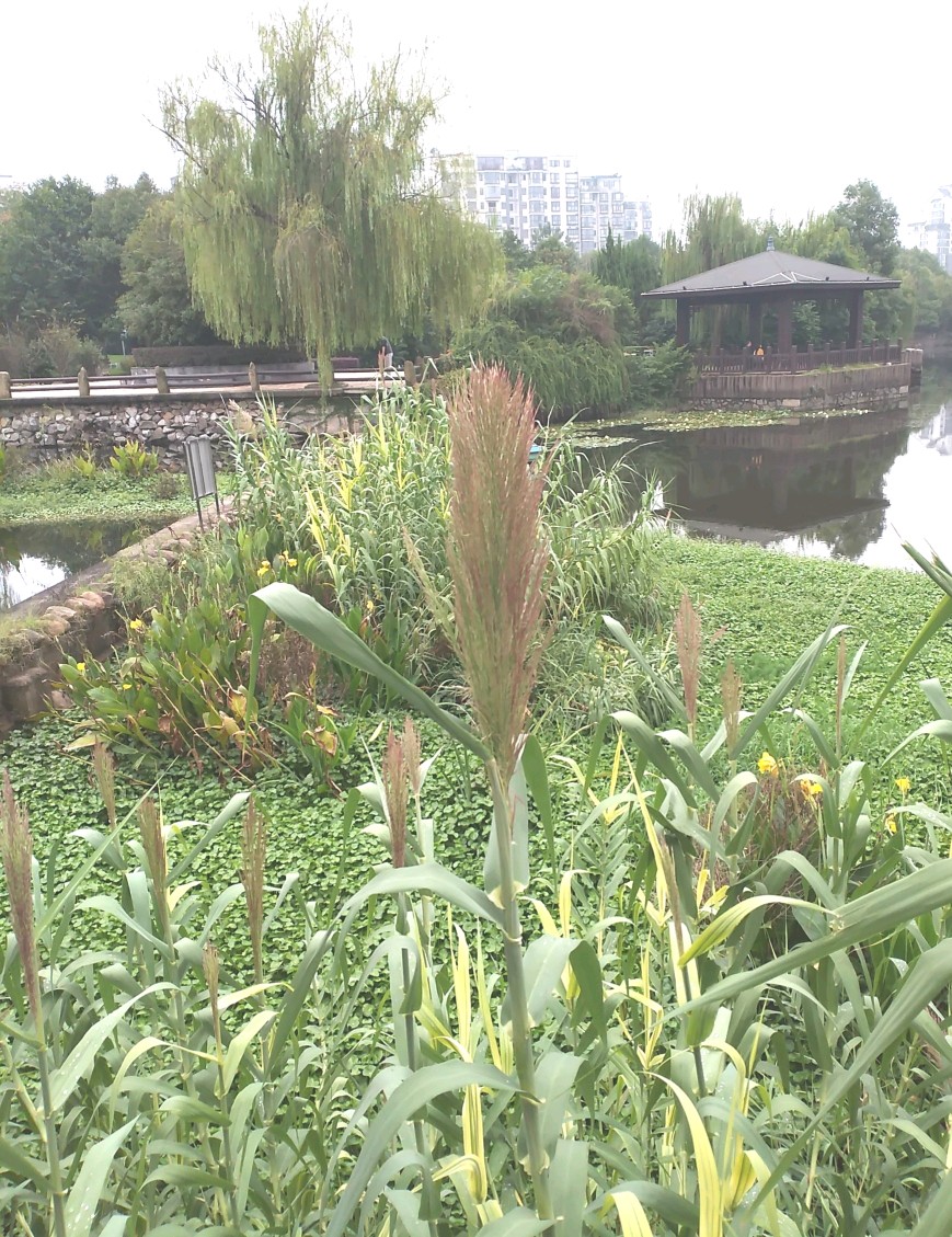 湖中的芦竹。