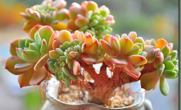 如果你的多肉一直放在书桌或床头,不让它见天日的话。那么,它长得可就没那么好了,久之你会发现多肉开始徒长、叶片化水,严重会黑腐死亡。所以,平时还是要保证每盆多肉都能照射到充足的光照才长得好。