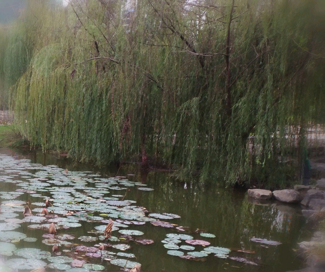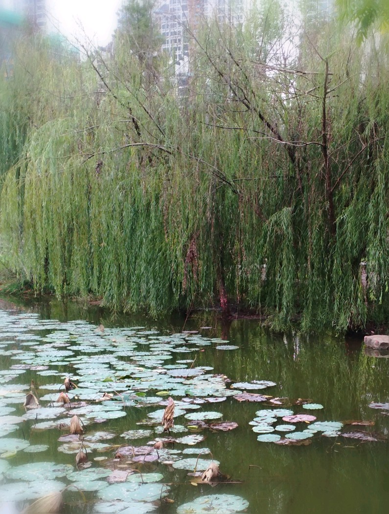 残荷,败柳。