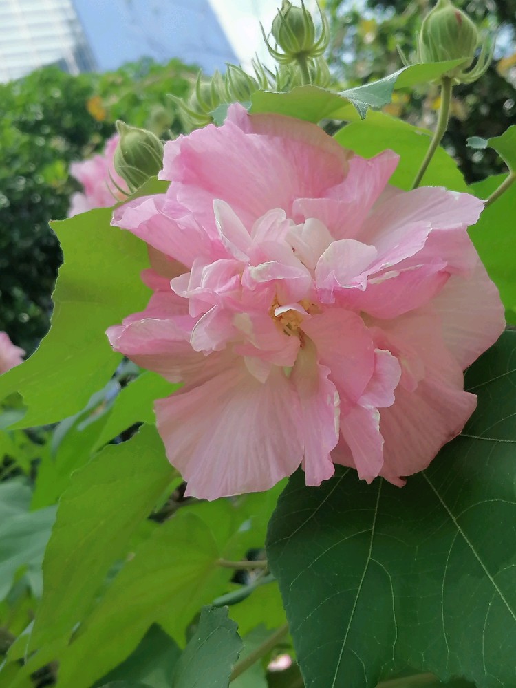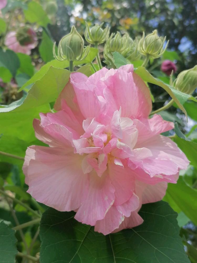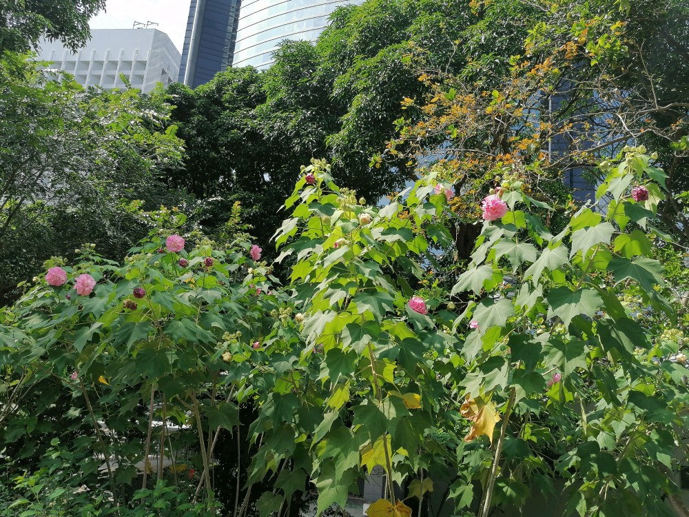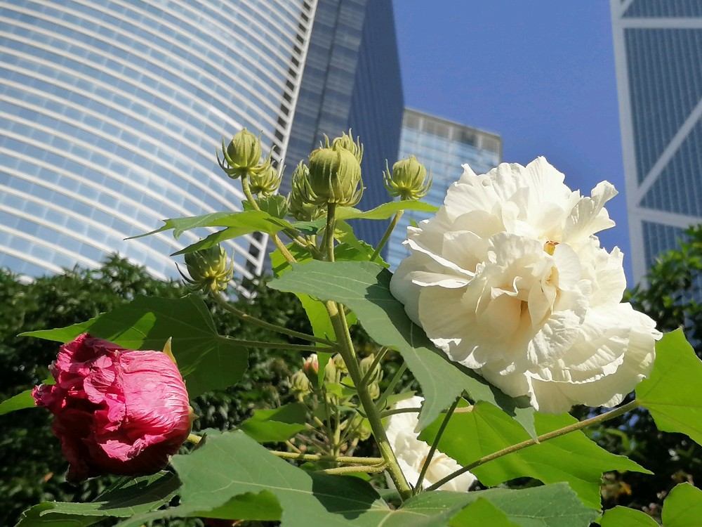 木芙蓉花可以一日三變:白色--淡紅色--深紅色;木芙蓉更是變色花中的佼佼者,堪稱植物界的「變色龍」。
