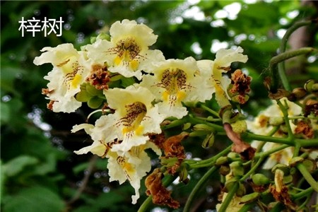 花及果不同楸树的花色为浅粉色,内有紫红色斑点,楸树自花不孕,所以其往往只开花不结果,花期在4/5月份。梓树的花冠呈淡黄色或是黄白色,内有黄色条纹,花期比楸树长,果熟期在8-10月。