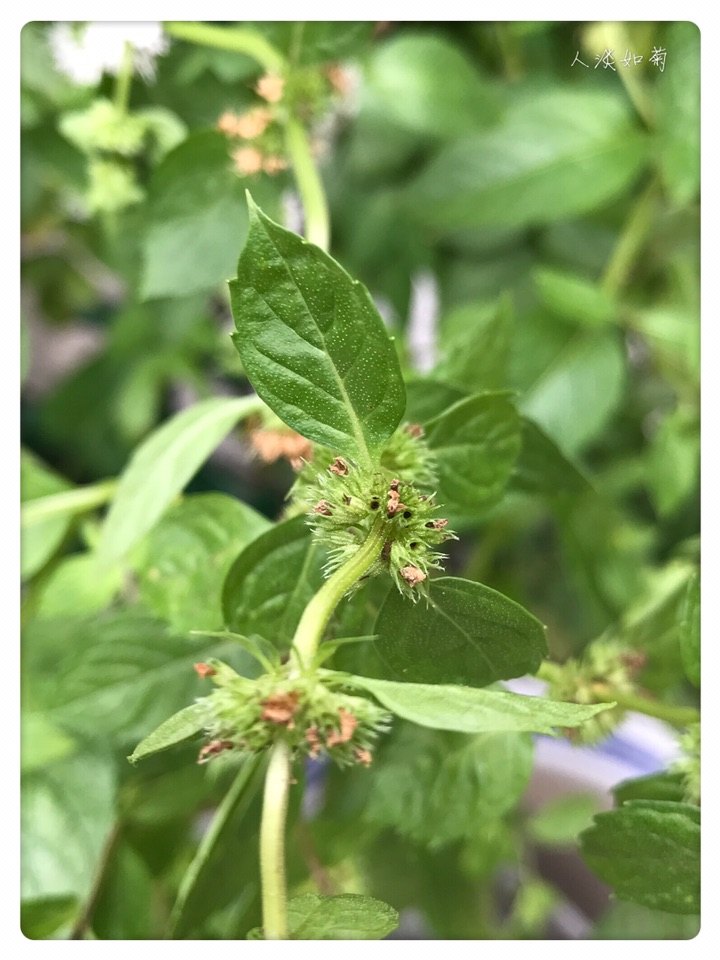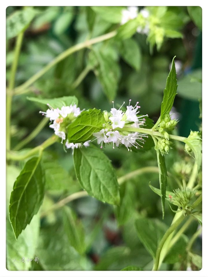 去年秋天薄荷生长状态不好,于是弃之室外过冬,曾以为它冻死了。今年春天用花盆想将土移出时发现盆中竟全是未出土的花芽,赶紧埋了回去,接着就见它发芽、长高、分杈、开花、结实,走近便闻到它独特的气息。