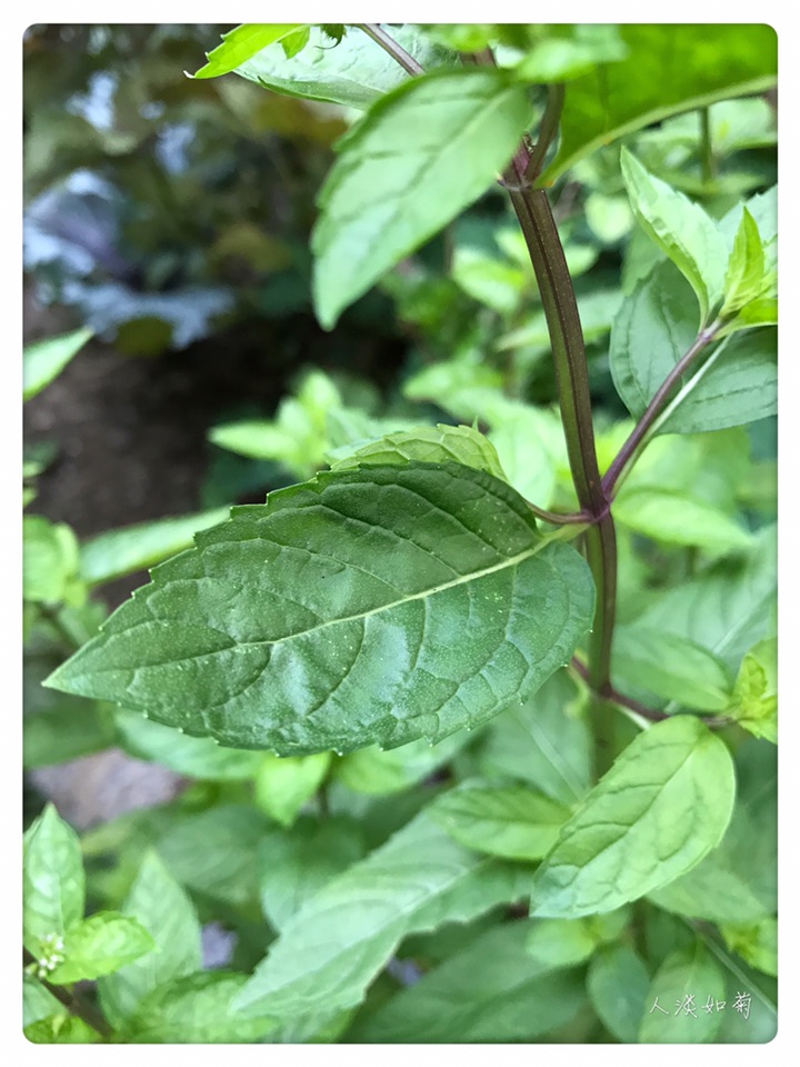 全株青气芳香。叶对生,花小淡紫色,唇形,花后结暗紫棕色的小粒果。