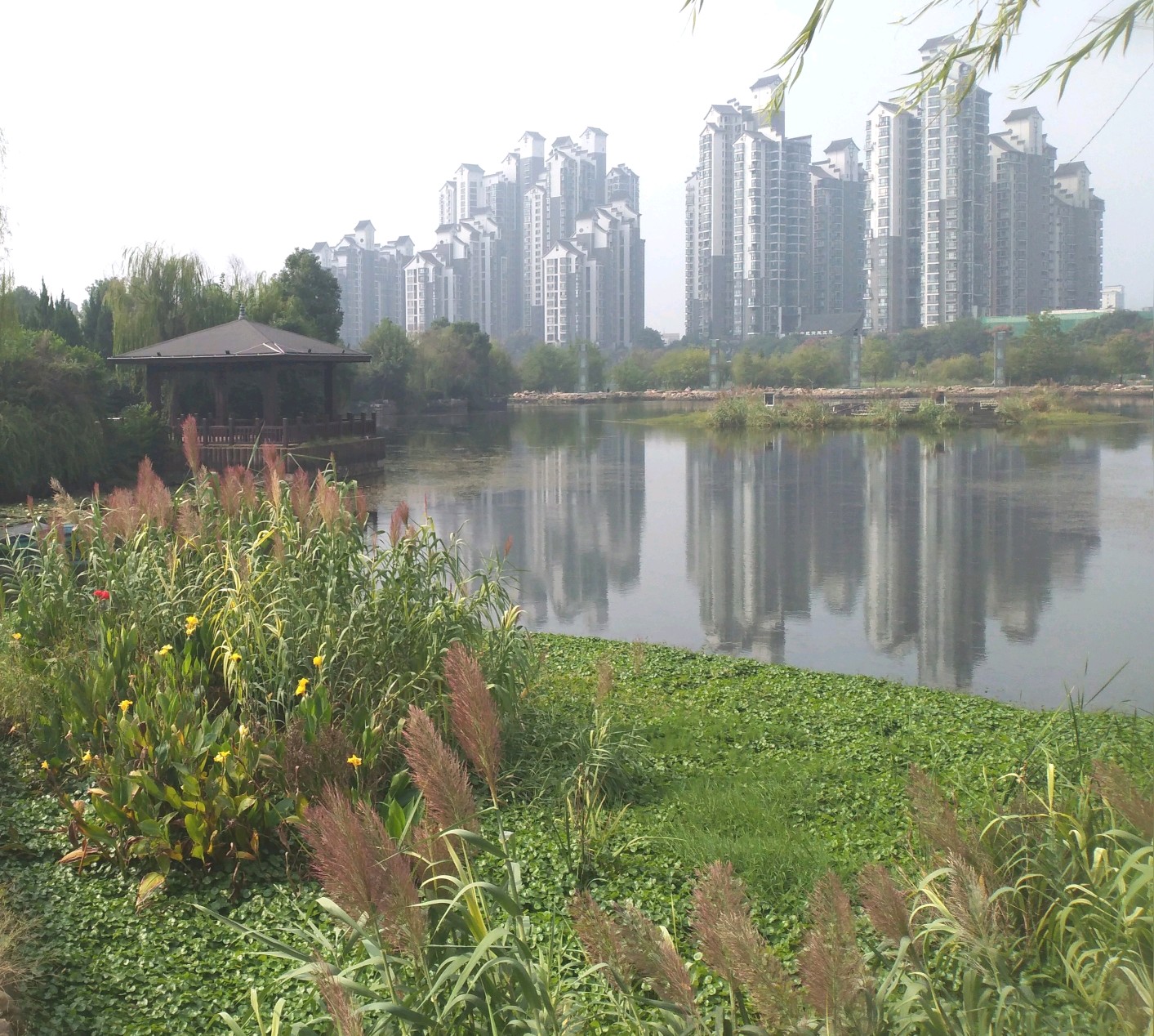 湖中的芦竹。