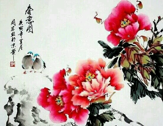 牡丹华贵,秀丽,有韵味。用国画来表达,妙哉!