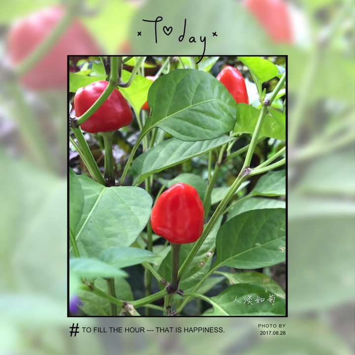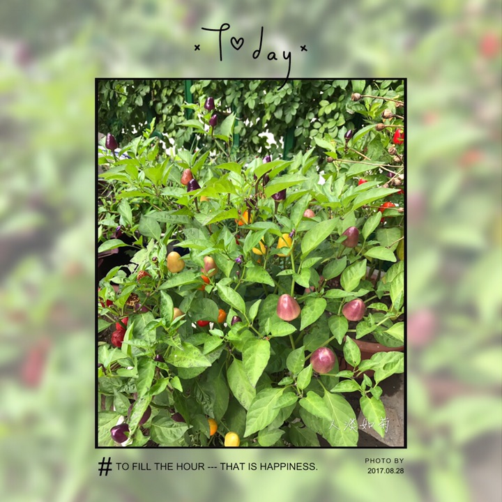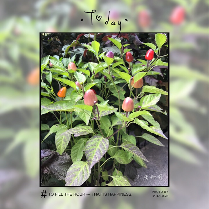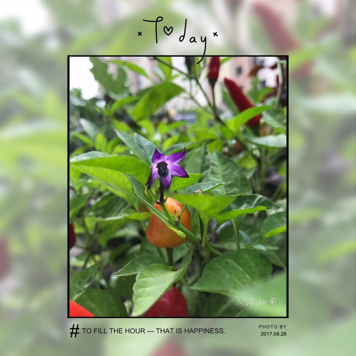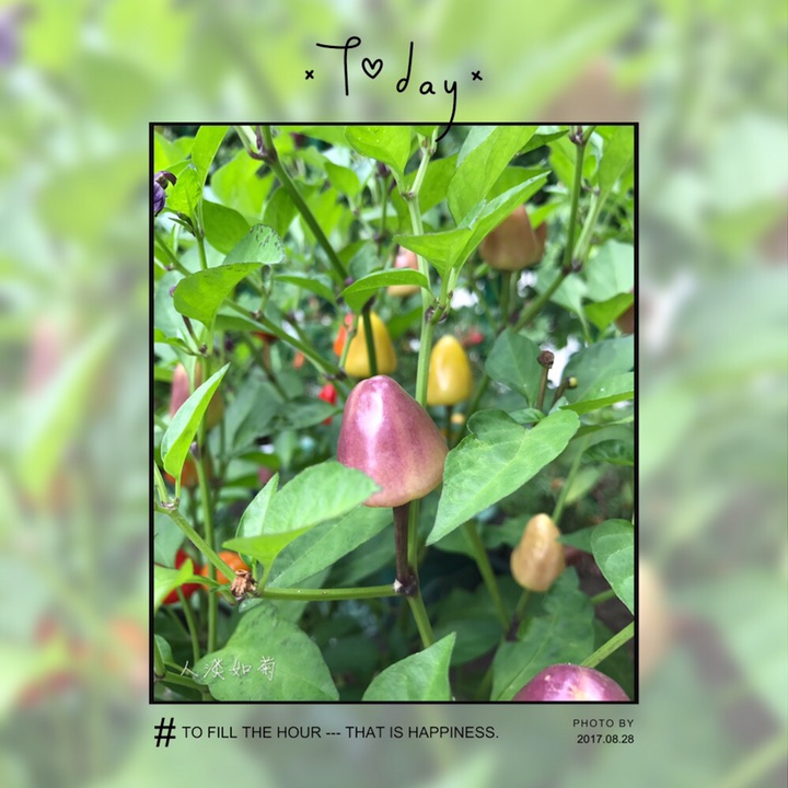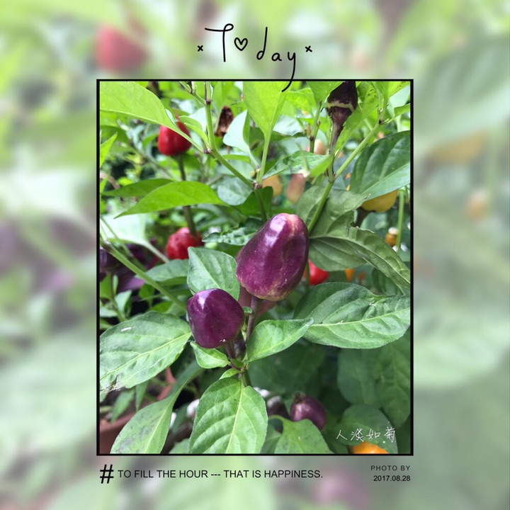 去年只几棵的五彩椒今年已发展为几盆,既易养又喜庆,在北方的这个时候它突显优势,小小的椒从白、黄到紫、红很是可爱。