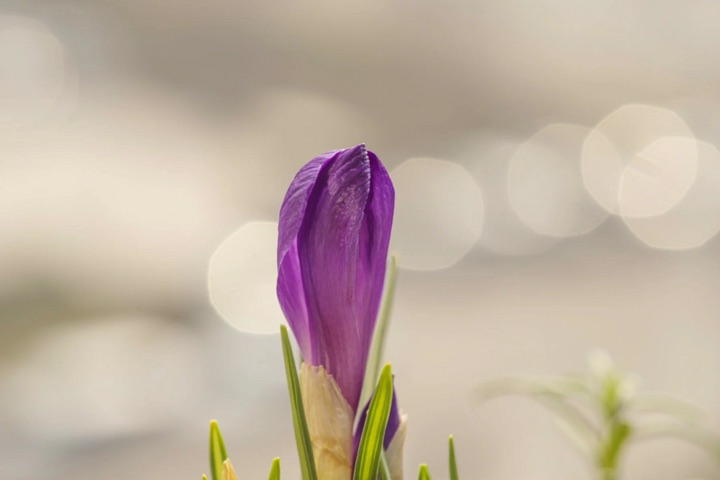 一个礼拜只能见一次,因为我上班去时它还没开,等我下班回到家,它已收起花瓣。这是这一周的番红花。