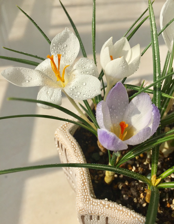 去年年底开始对种球感兴趣,于是挑了番红花和葡萄风信子来种。网购的球,16年12月下旬种下,今天第一批正式开放,赶紧记录下来。