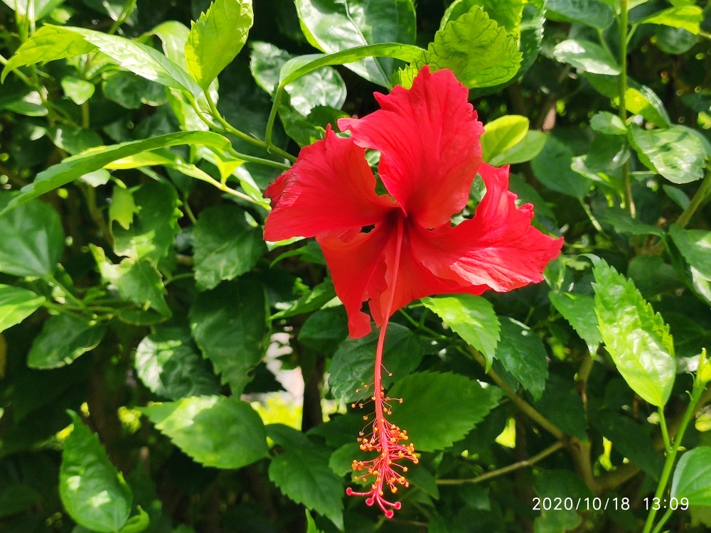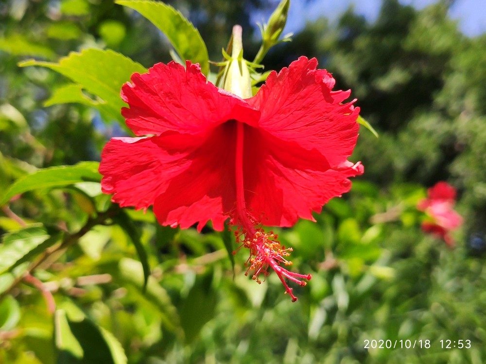 朱槿(学名:Hibiscus rosa-sinensis Linn. ):又名扶桑、佛槿、中国蔷薇。汉语拼音:zhujin。由于花色大多为红色,所以中国岭南一带将之俗称为大红花。