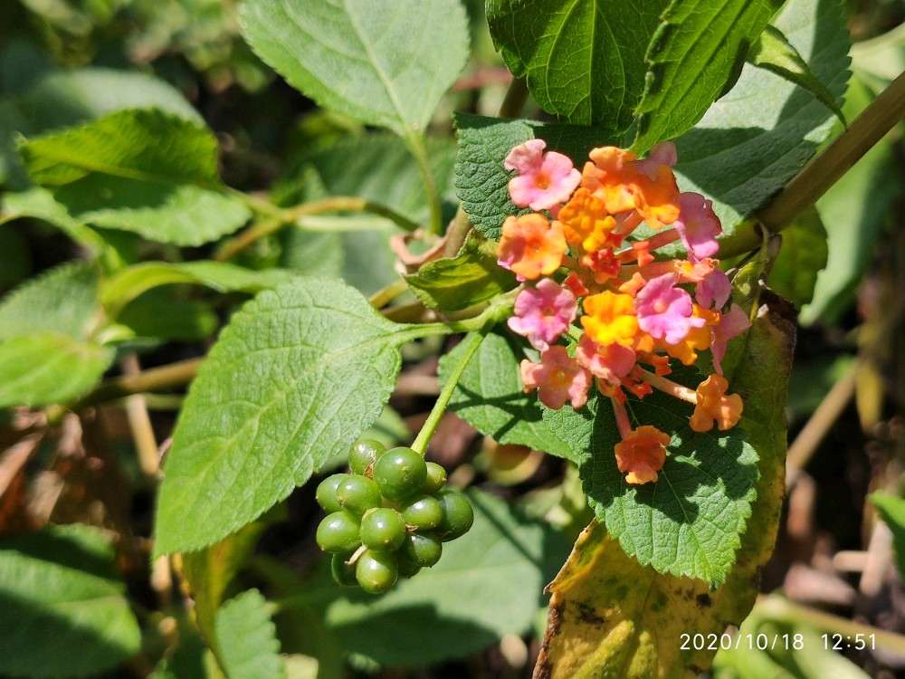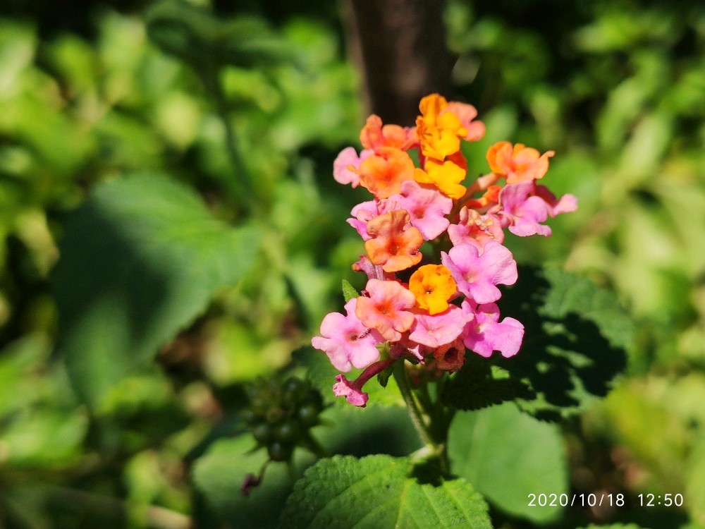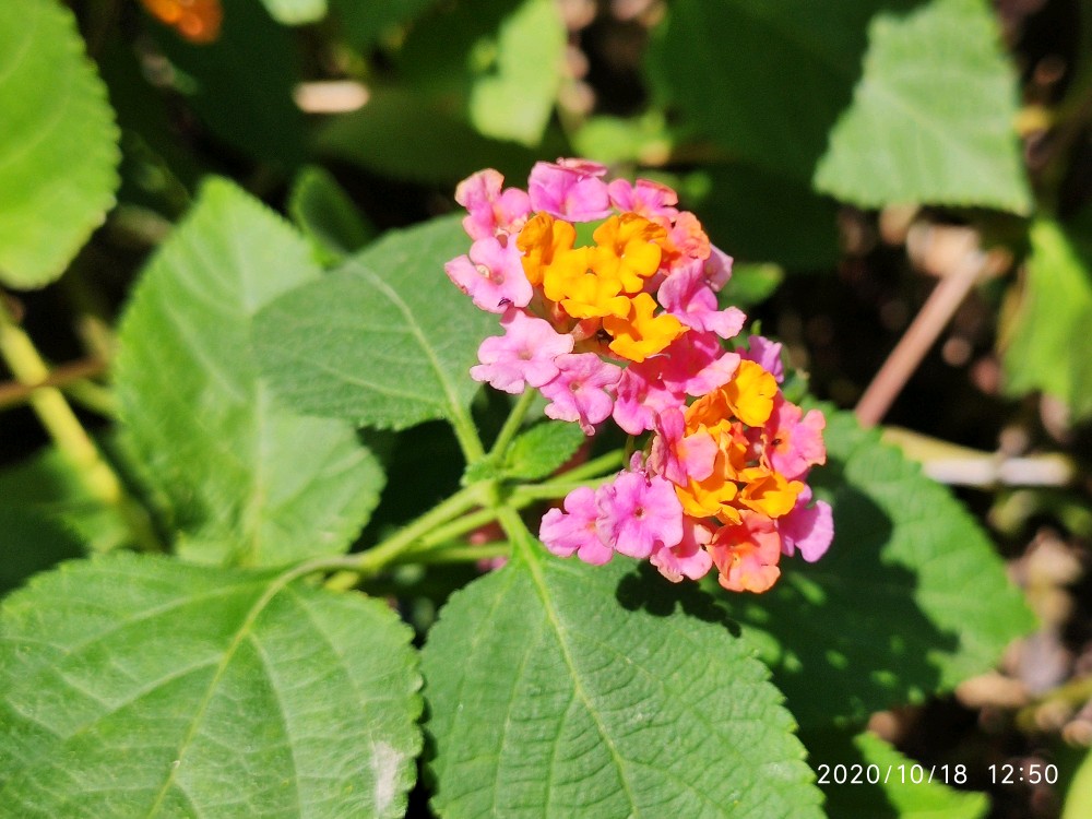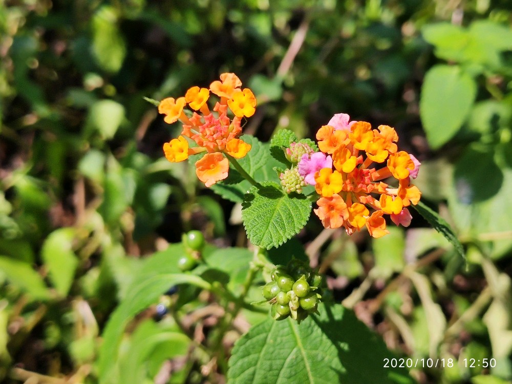 马缨丹原产非洲,因花开像古时马头上带的红缨,得名马缨丹。别名五色梅、臭草
