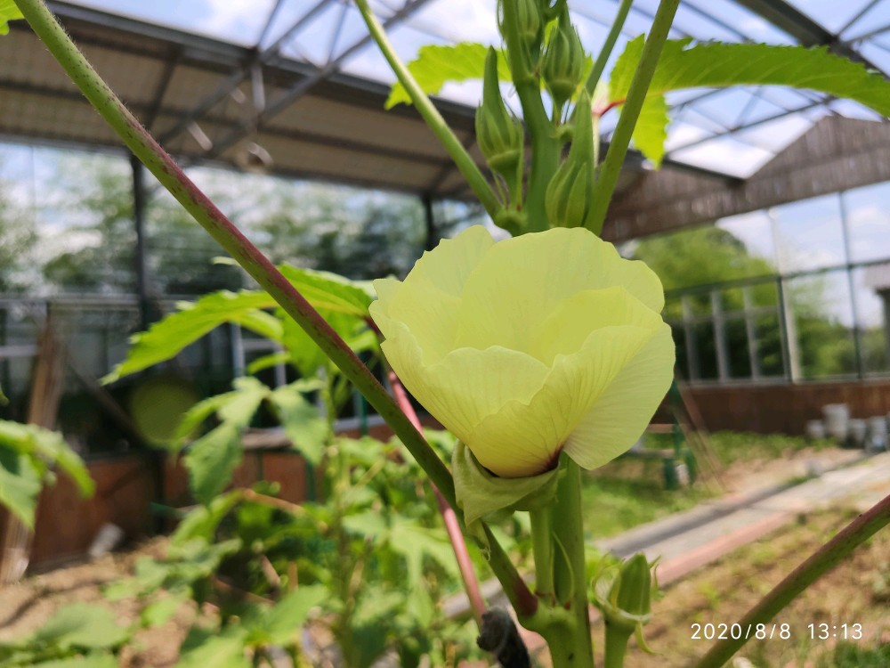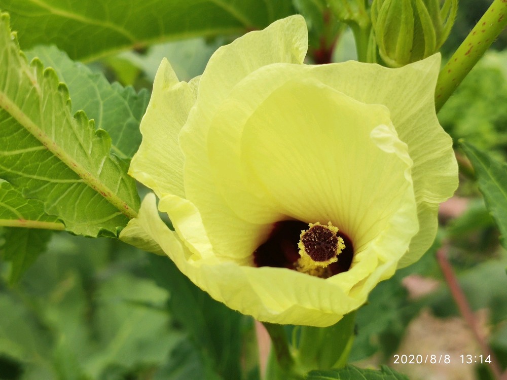 去一个农庄里吃饭时看到的,园子很大。里边的菜却种的很稀疏平常。唯一抢眼的也就是这绽放着娇艳花朵的秋葵了