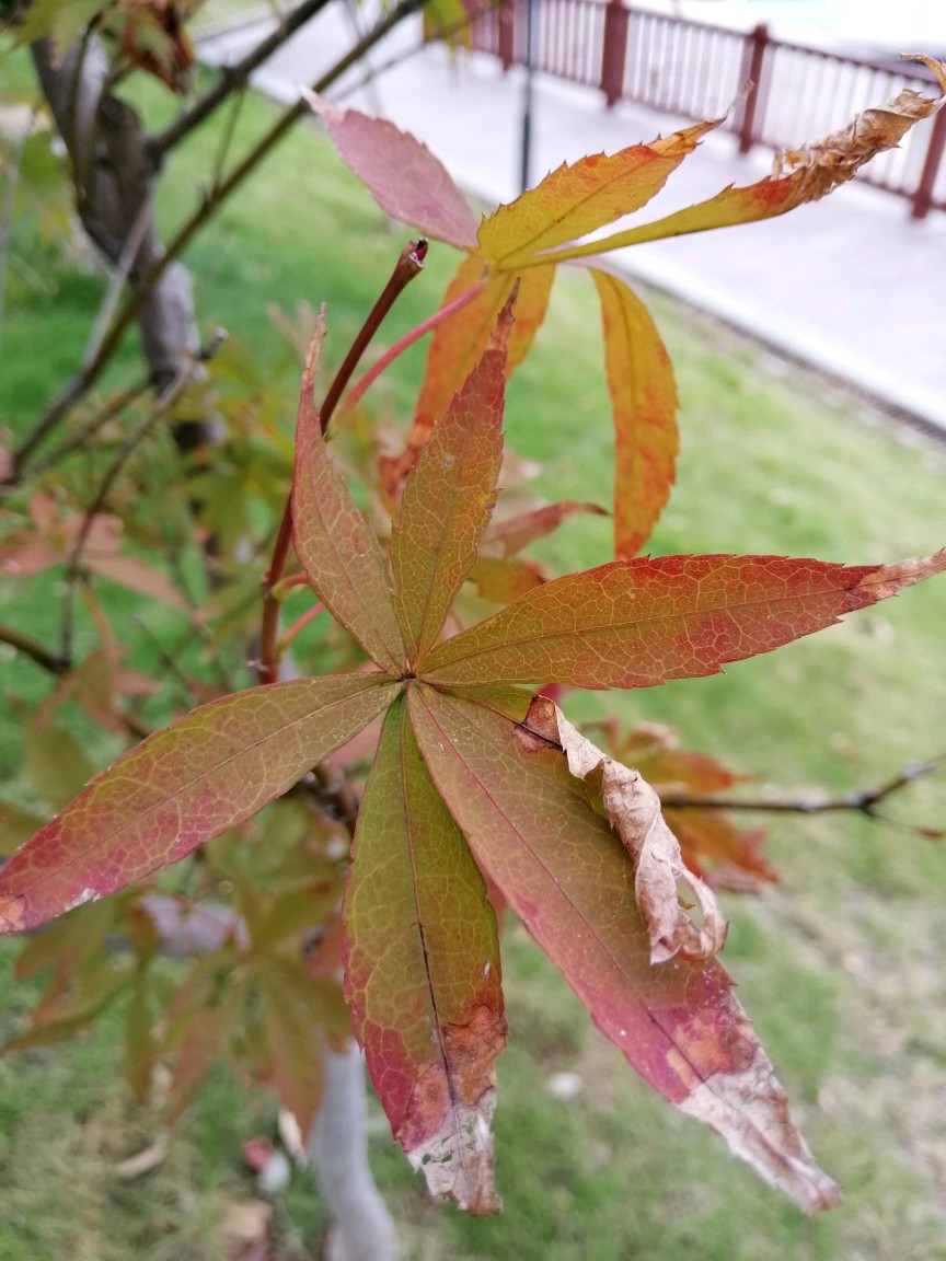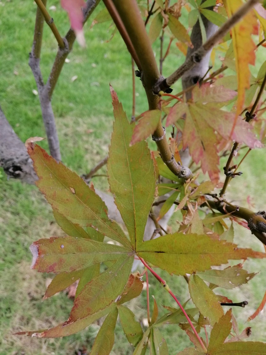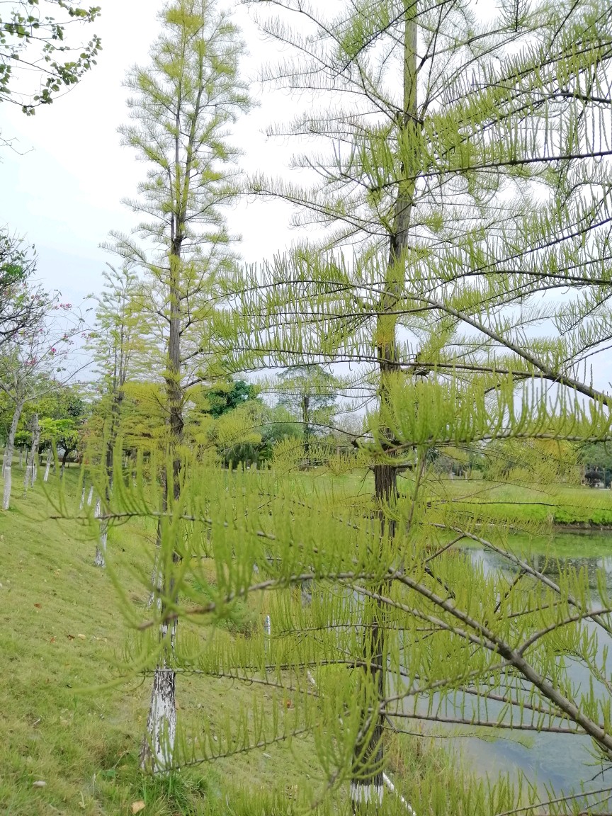 槭叶不蕴不火,池杉仍是苍绿色,