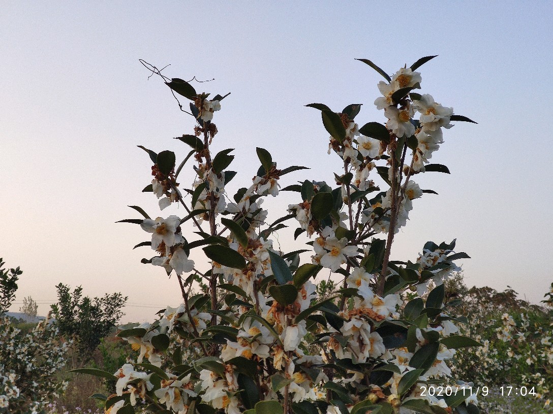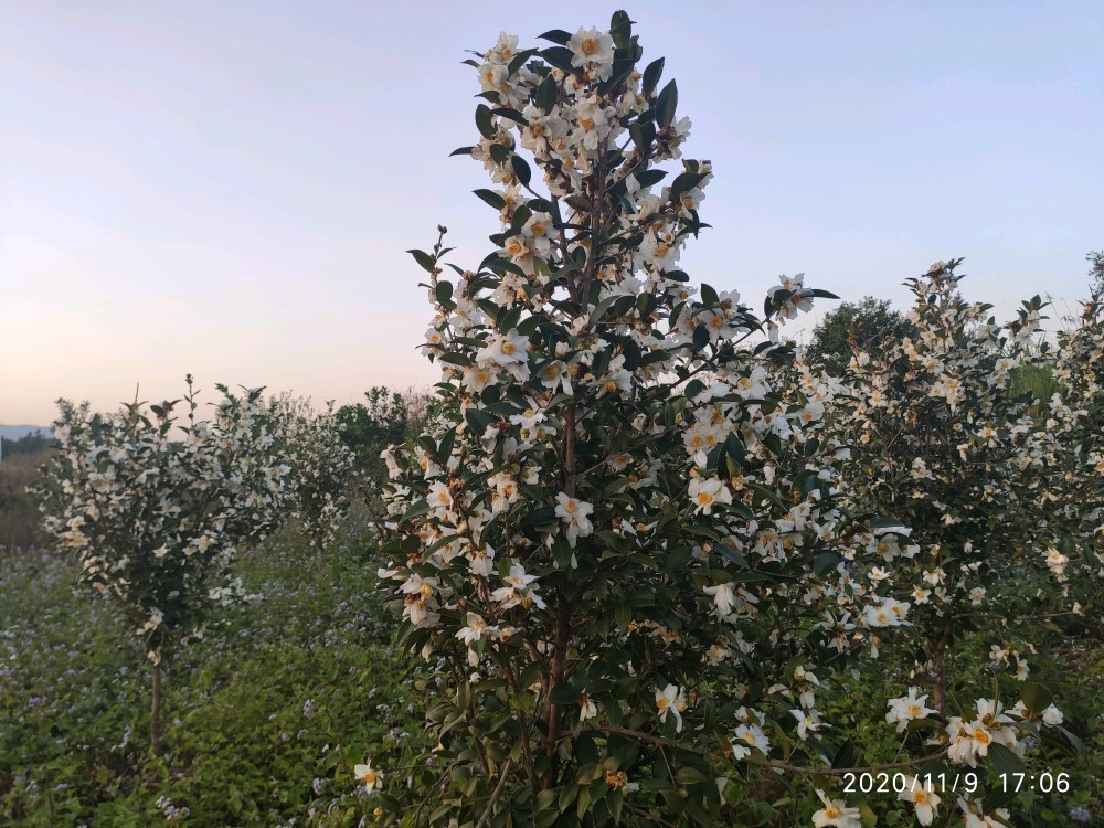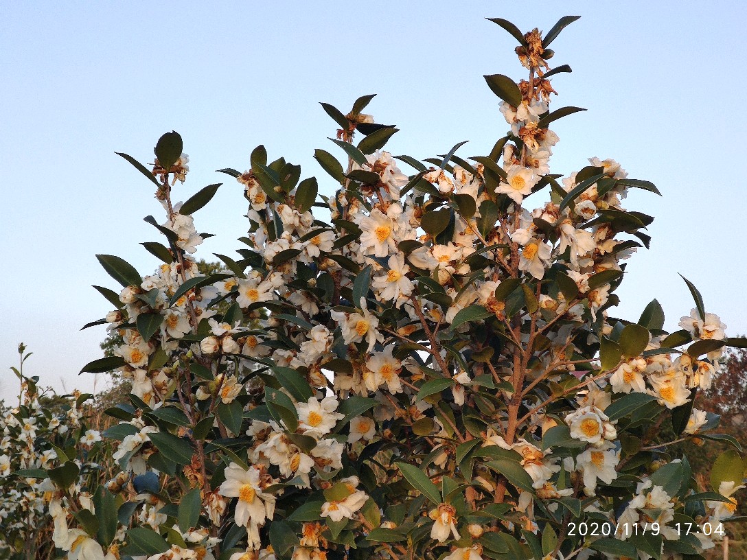 记得前段时间还看人们收茶籽来着,不觉间已是油茶花的花期了。看这满树的繁花,明年定是个丰收年吧