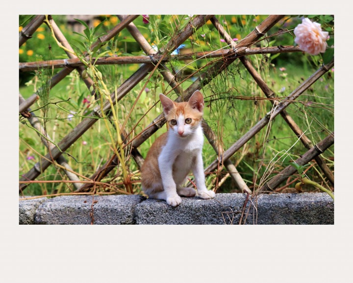 一只中华田园猫和玫瑰花,农家之乐