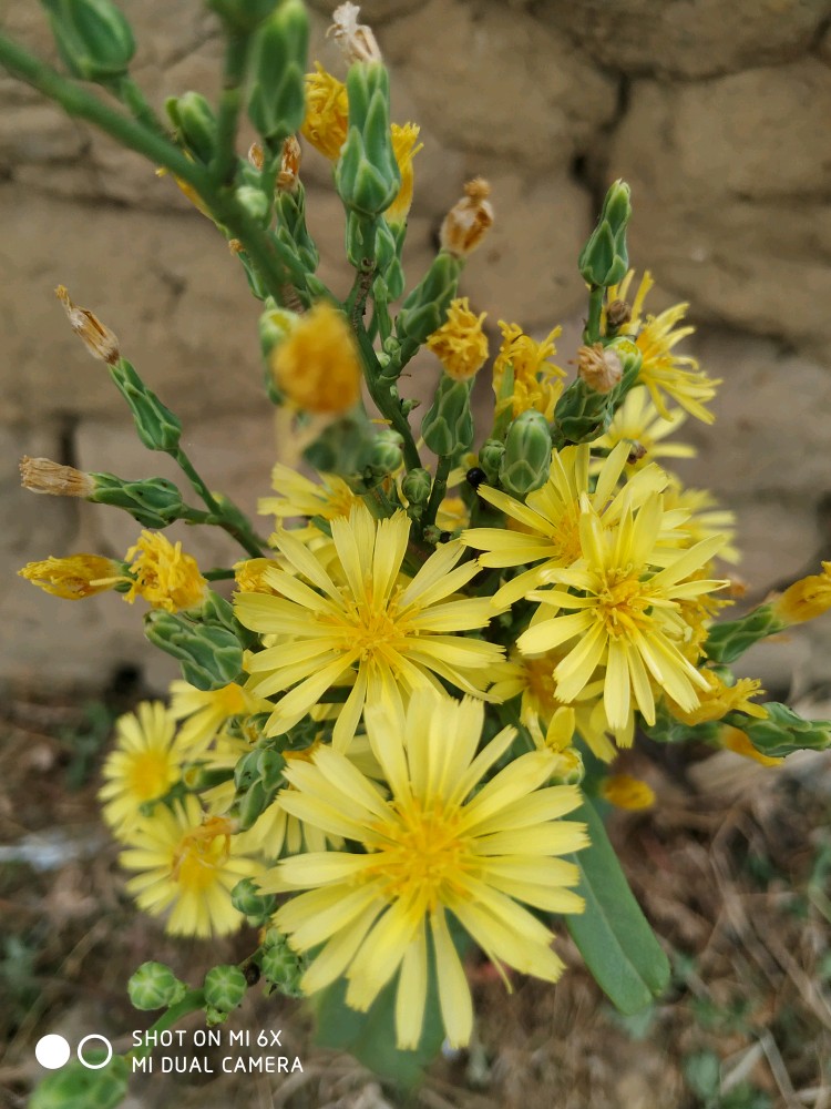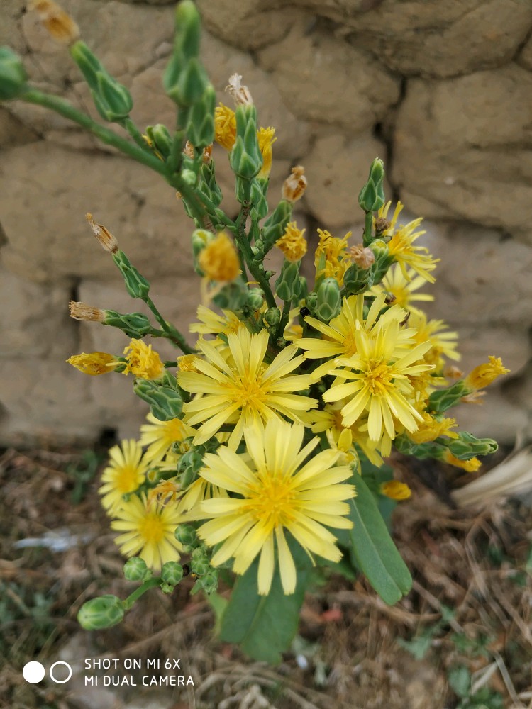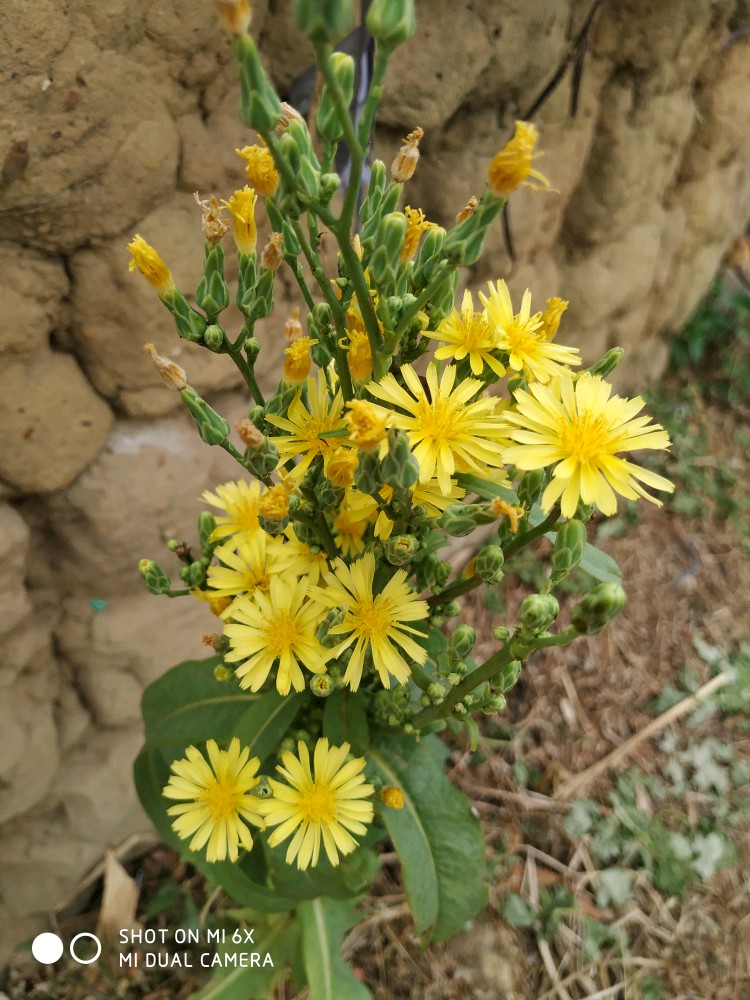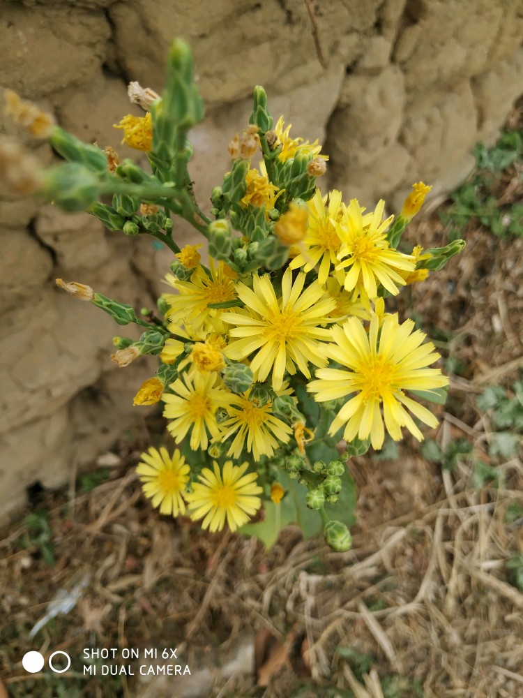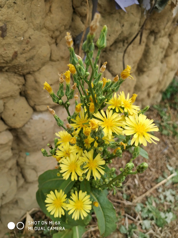 野外散步时偶然看到小路边有一棵开满了花朵的苦麦菜