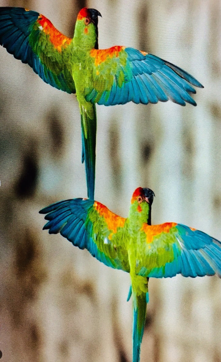 比翼双飞的奥梅雷克的红额金刚鹦鹉。