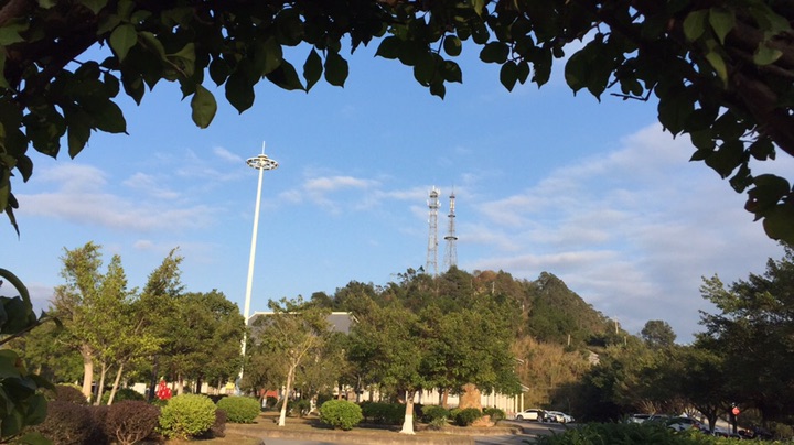 公园里的花环拍摄的风景,好似山外有山,塔中塔🗼