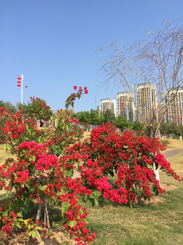 初春时节,簕杜鹃红红火火的盛开。