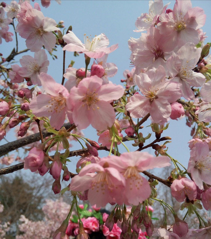 如霞似锦,樱花绽放。有种小家碧玉的感觉。