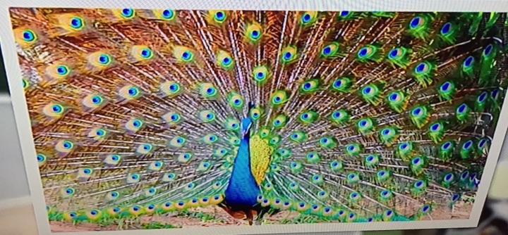 雄孔雀开屏展示它华丽的羽毛。美死了!