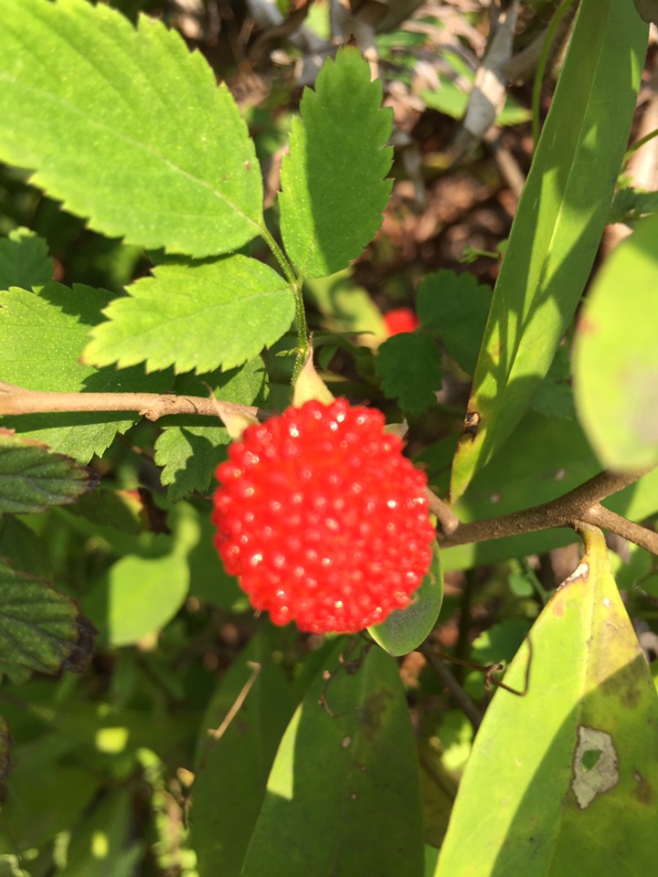 这个可以吃呀,覆盆子。长在地上的那个叫蛇莓