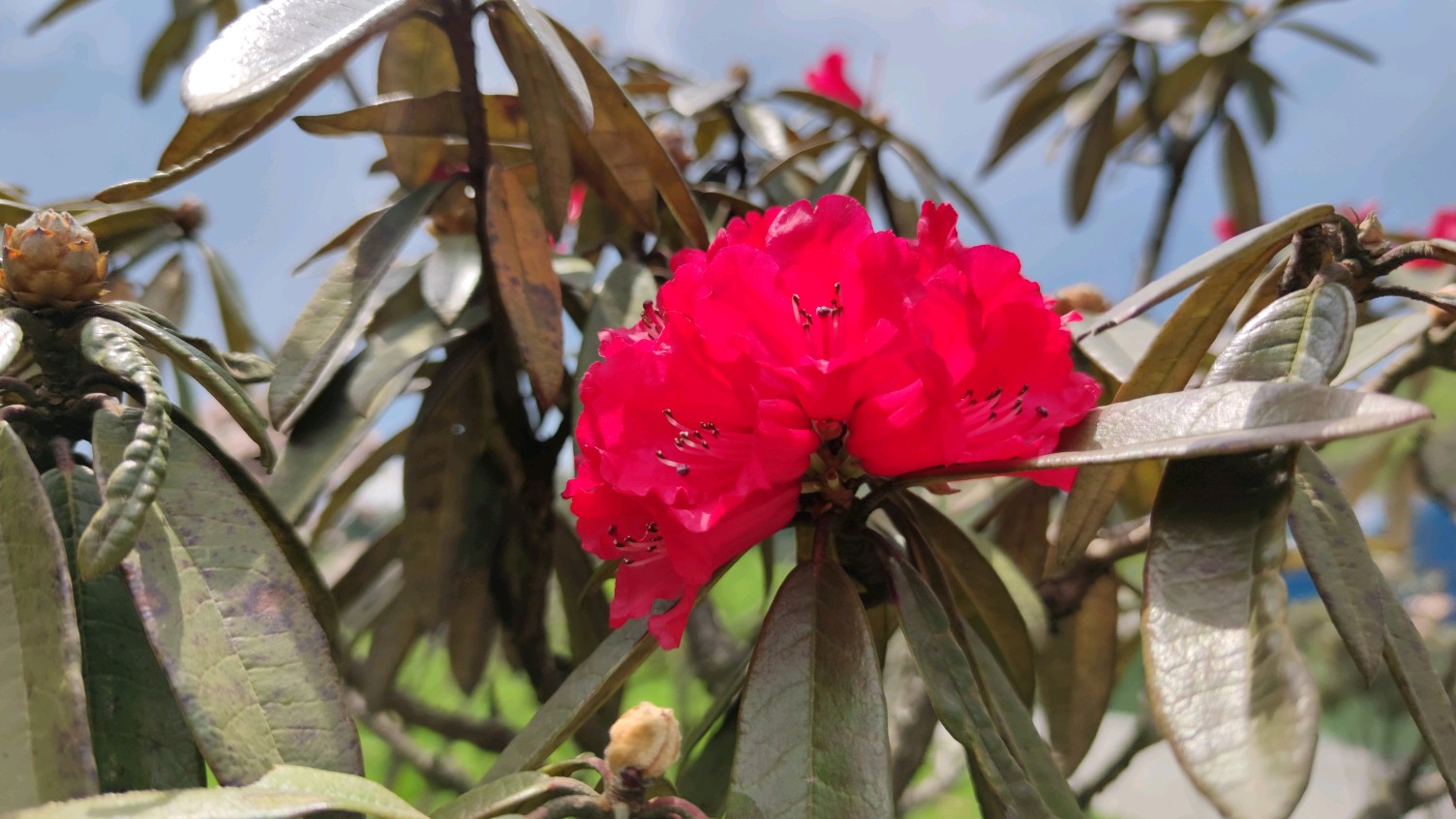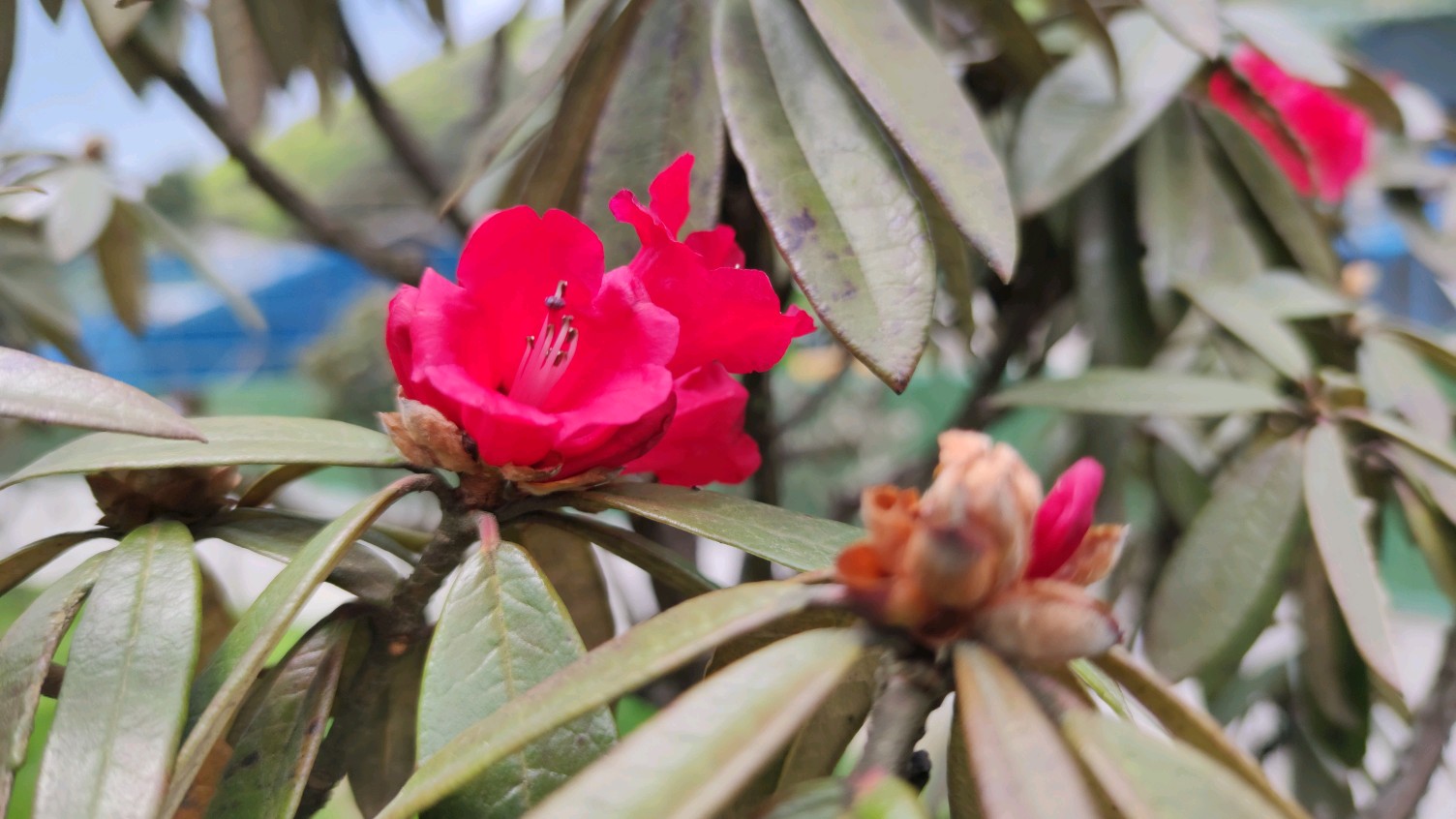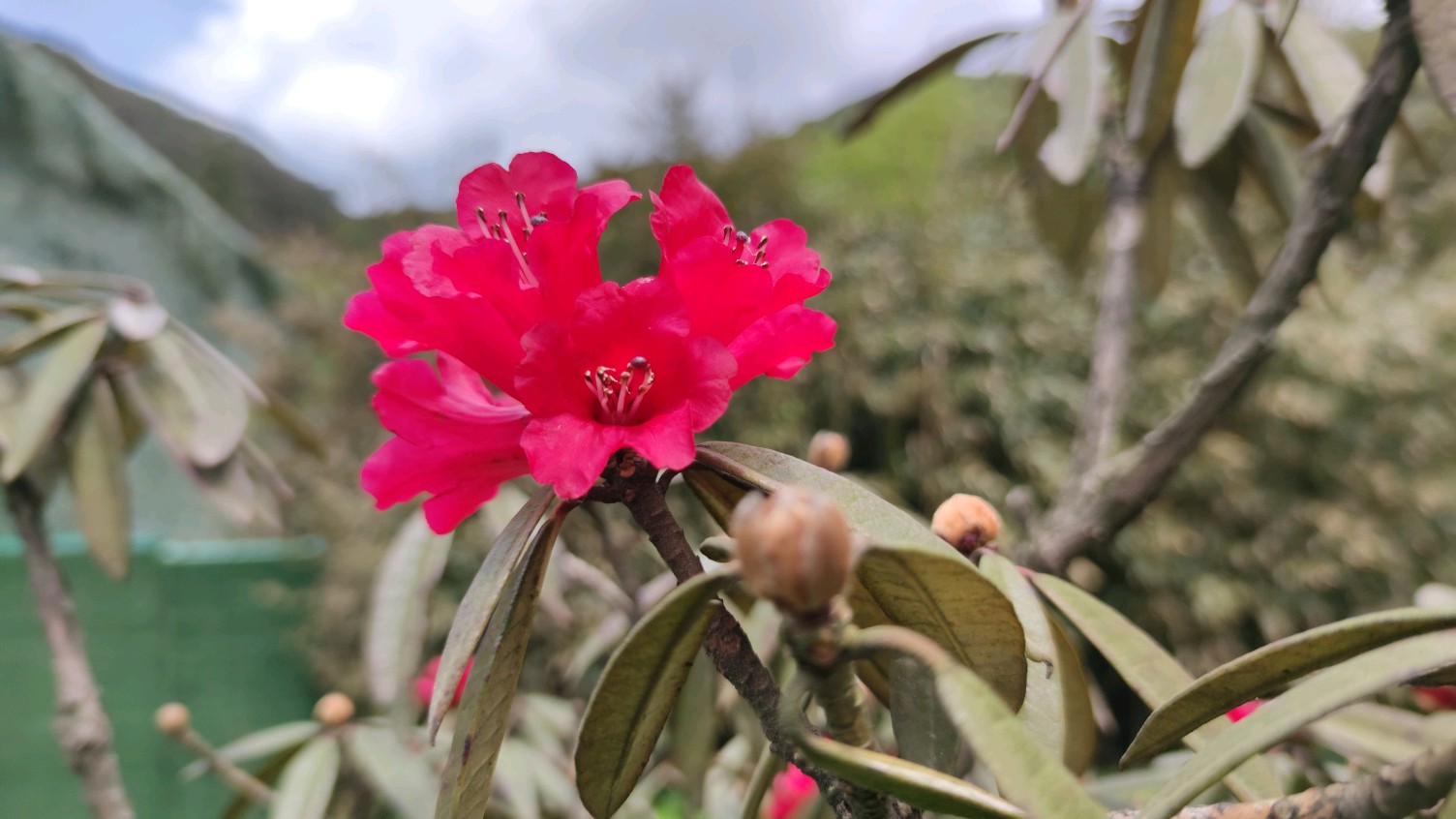 花冠钟形,长3-5厘米,直径3-4厘米,肉质,深红色,内面基部有5枚黑红色蜜腺囊,裂片5,近于圆形,长约1厘米,宽1.3厘米,顶端有缺刻;雄蕊10,不等长,长1.6-4厘米,花丝无毛,花药长圆形,长2-2.8毫米;子房圆锥形,长7毫米,密被红棕色毛,花柱长2.8厘米,无毛,柱头头状。蒴长圆柱形,黑褐色。