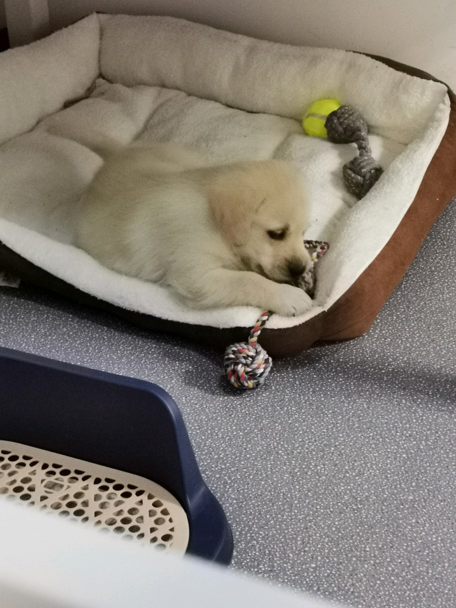 最近养了一只黄毛拉布拉多,它叫豆皮;