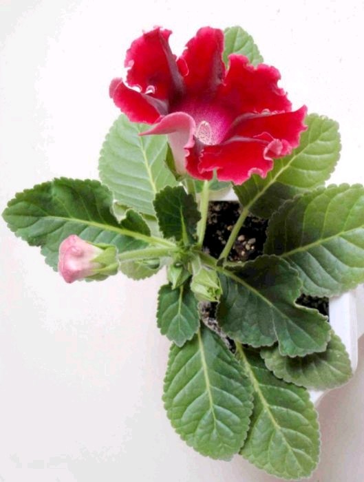 多年生草本。根状茎块状,长0.8-1.5厘米,粗7毫米。茎高9.5-15.5厘米,不分枝,有2-3节,被淡褐色短柔毛。叶对生,每对叶稍不等大,具柄;叶片草质,卵形,长4-8厘米,宽3.4-5.8厘米,顶端急尖或短渐尖,基部斜宽楔形或斜圆形,边缘有不等的牙齿,上面被疏柔毛,下面沿脉疏被短柔毛,侧脉每侧5-6条;叶柄长0.3-2.7厘米,被短柔毛。聚伞花序长2厘米,约有5花;花序梗长1厘米,与花梗被柔毛;花梗长1.5-4毫米。花萼宽钟状,直径7毫米,长5毫米,5裂达基部,外面疏被短柔毛,内面无毛,筒长2.5毫米,在裂片之间有纵褶,裂片三角形,长2.5毫米。花冠白色,长10毫米,外面被短柔毛,内面无毛;筒长5毫米,口部斜,直径5毫米,基部囊状;上唇长2.5毫米,2裂达基部,裂片卵状三角形,宽3毫米,顶端钝;下唇长4毫米,3深裂,裂片宽长圆形,顶端圆形。雄蕊4,无毛,花丝着生于距花冠基部0.5毫米处,长1.2毫米,花药长1.2毫米,小尖头长0.2毫米;退化雄蕊长0.8毫米。花盘高0.2毫米。雌蕊长5.5毫米,无毛,子房直径1毫米,花柱细,长3.8毫米,柱头扁球形,直径0.7毫米。花期6月。[1]