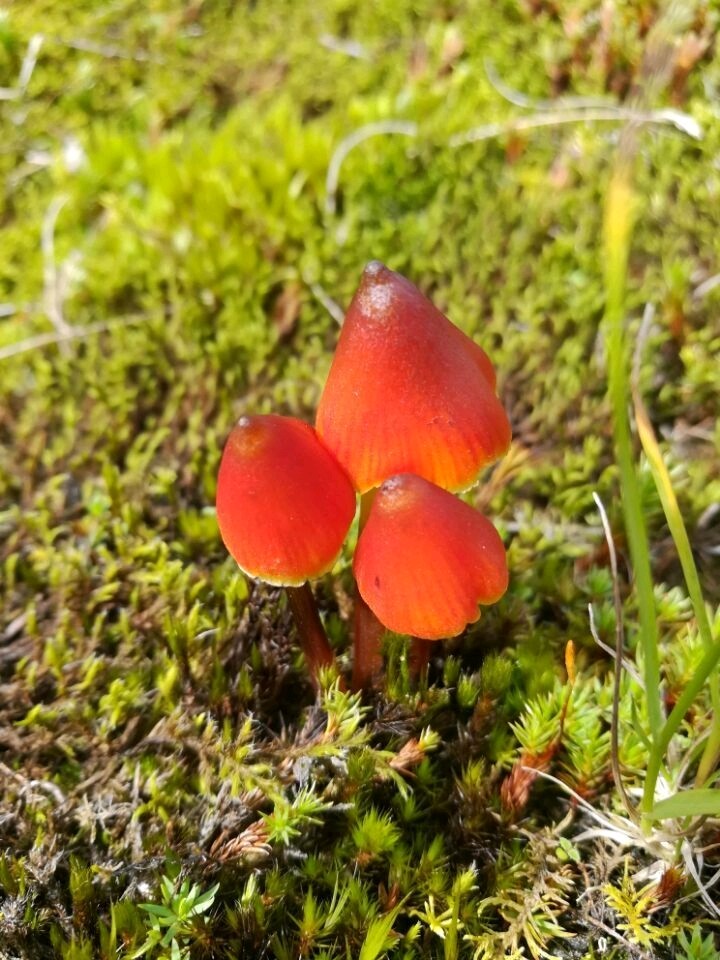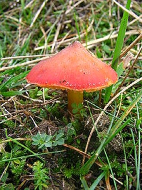锥形湿伞,分布于全球各地区,为蜡伞科植物,也是常见野菇之一种。该种红色菇类生长于夏天与秋天,数天生,肉质脆具有蜡质,菌盖2cm-4cm宽,初圆锥形,具有毒性。