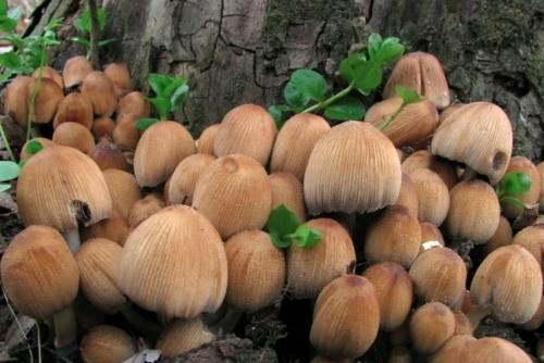 晶粒鬼伞Coprinus micaceus (Bull.) Fr. 是属于 担子菌类的 伞菌目 鬼伞科的一种大型真菌,它是冬季之后最早出现的真菌之一,因其菌盖表面留有一层晶粒状的 菌幕残余,因而得名。晶粒鬼伞是 菌根菌,分布很广,树木根部群生。晶粒鬼伞散布 孢子的方式主要是在后期 菌褶液化成墨汁状,吸引昆虫在其上活动并带走孢子,或者经过雨水冲刷散布。晶粒鬼伞在早期可以食用,但最好不要同时饮酒,可能有些人容易中毒!