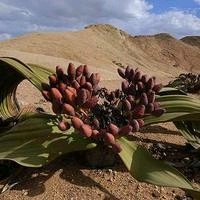 百岁兰(学名:Welwitschia mirabilis Hook.f.)是百岁兰科百岁兰属植物。树干非常短矮而粗壮,呈倒圆锥状,高很少超过50厘米,而直径可达1.2米;树干上端或多或少成二浅裂,沿裂边各具一枚巨大的革质叶片,叶片长带状,具多数平行脉。球花形成复杂分枝的总序,单性,异株。一般的雌株可以结60到100个雌球果,种子可以达到10000粒。种子有纸状翼,种子具内胚乳和外胚乳,子叶2枚。[1]