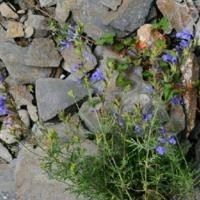 甘青青兰又名:陇塞青兰。多年生草本,有臭味。茎直立,高35-55厘米,钝四棱形,上部被倒向小毛,中部以下几无毛,节多,节间长2.5-6厘米,在叶腋中生有短枝。叶具柄,柄长3-8毫米,叶片轮廓椭圆状卵形或椭圆形,基部宽楔形,长2.6-4(-7.5)厘米,宽1.4-2.5(-4.2)厘米,羽状全裂,裂片2-3对,与中脉成钝角斜展,线形,长7-19(30)毫米,宽1-2(3)毫米,顶生裂片长14-28(-44)毫米,上面无毛,下面密被灰白色短柔毛,边缘全缘,内卷。轮伞花序生于茎顶部5-9节上,通常具4-6花,形成间断的穗状花序;苞片似叶,但极小,只有一对裂片,两面被短毛及睫毛,长约为萼长的1/2-1/3。花萼长约1-1.4厘米,外面中部以下密被伸展的短毛及金黄色腺点,常带紫色,2裂至1/3处,齿被睫毛,先端锐尖,上唇3裂至本身2/3稍下处,中齿与侧齿近等大,均为宽披针形,下唇2裂至本身基部,齿披针形。花冠紫蓝色至暗紫色,长2.0-2.7厘米,外面被短毛,下唇长为上唇之二倍。花丝被短毛。花期6-8月或8-9月(南部)。