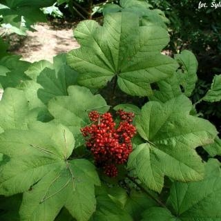 多刺藻叶灌木,高约1m,稀达3m。根粗大而长,呈棒状,侧根少。茎直立,少分枝,有刺,节部刺多。树皮淡灰黄色,贿部大,呈白色;芽鳞褐色,密生刺毛。单叶互生;叶柄长4-18cm,密生针刺,基部膨大抱茎;叶片掌状3-5裂,长8-20cm,宽12-32cm,裂片三角形或阔三角形,上面无毛或疏生刚毛,下面沿脉有短柔毛,基部心形,边缘有不整齐的锯齿或芽齿,生有刺毛,上面暗绿色,主脉凸起,疏生刺毛,下面淡灰绿色,沿脉密被刺毛,侧脉和网脉均明显。圆锥花序近顶生,长8-18cm,主轴密生短刺和刺毛;伞形花序直径9-13mm,有花6-10朵,棕黄褐色;花颧5,无毛,边缘有5小齿;花瓣5,长圆状三角形,白绿色;雄蕊5;子房下位,2室,花柱2,基部全生或合生至中部,长约3mm。果实为浆果状核果,略呈扁球形,直径7-12mm,黄红色,宿存花柱长4-4.5mm。花期6-7月,果期8-9月。[1]
