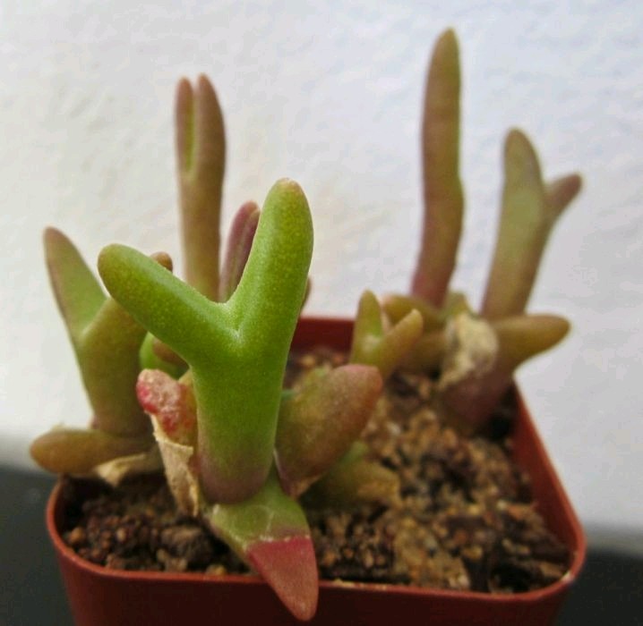 不死鸟(Mitrophyllum grande)是番杏科中一个很奇特的属Mitrophyllum(奇鸟菊属),全属仅6种,和景天科的不死鸟同名,虽然叫不死鸟,是看起来不容易死,生长过程中是比较容易感染细菌死亡的品种。