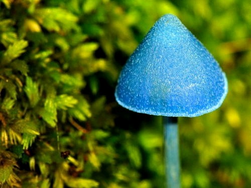 这是天蓝蘑菇(霍氏粉褶菌),这张图片来源网上,而且形色配图也和它完全重合……下面我们看一下两种担子菌的图片吧。