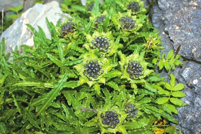 巴朗山雪莲,叶子长条呈锯齿状,具有刺鼻性芳香。巴朗山雪莲分布于海拔4400-4700米左右的高山流石滩上,存在于海拔最高的生态系统高山冰缘带中。[1