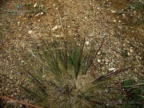 紫花针茅(学名:Stipa purpurea Griseb.)是禾本科、针茅属多年生密丛草本植物。须根较细而坚韧。秆细瘦,高可达45厘米,基部宿存枯叶鞘。叶鞘平滑无毛,长于节间;基生叶舌端钝,秆生叶舌披针形,叶片纵卷如针状,下面微粗糙,圆锥花序较简单,基部常包藏于叶鞘内,长可达15厘米,分枝单生或孪生;小穗呈紫色;颖披针形,先端长渐尖,外稃背部遍生细毛,顶端与芒相接处具关节,基盘尖锐,密毛柔毛,芒两回膝曲扭转,第一芒柱遍生长柔毛;内稃背面亦具短毛。7-10月开花结果。