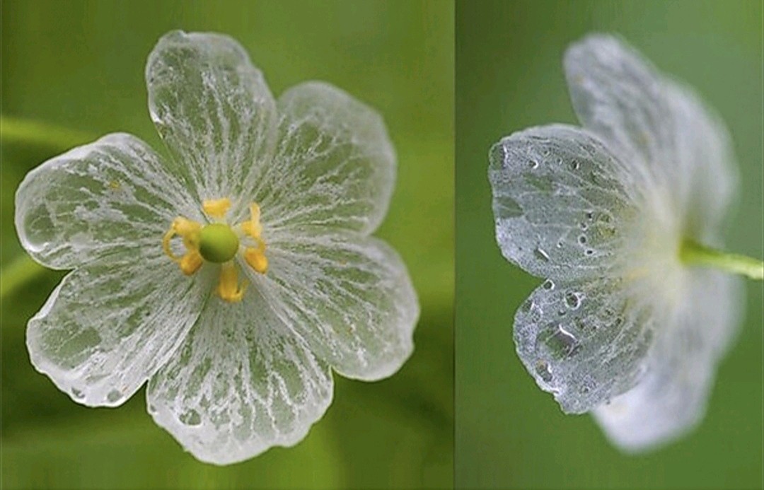 这主要是因为水分容易侵入花瓣内的细胞间隙,由于水和细胞液折射率接近,消除了反射界面,透射部分增强,花瓣就显得透明了。