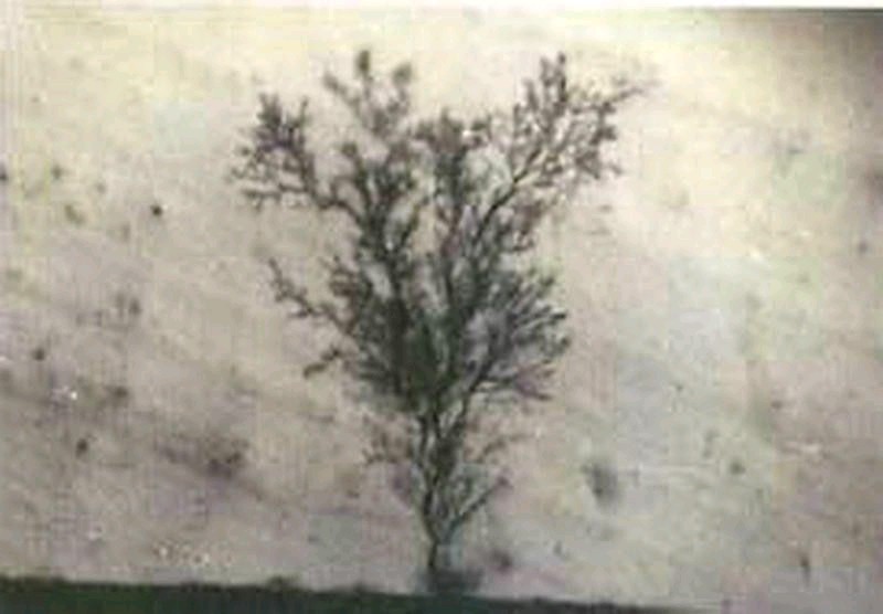 b) 在电树生长过程中,电树形态存在转换。频率的提高加快了电树形态的转换,使低频下发展极为缓慢的丛状型易转变为树干型和击穿型电树。