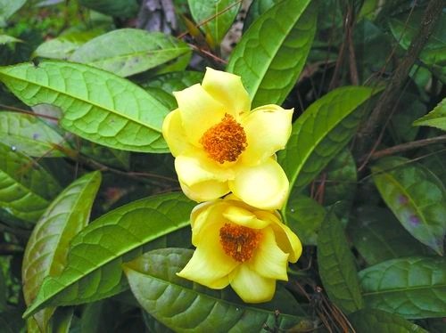 龙州金花茶是山茶科的常绿灌木或小乔木,因其仅分布于广西龙州且花色金黄而得名,有“植物界大熊猫”和“茶族皇后”之称。龙州金花茶是中国特有种、国家II级保护植物。2015年,世界自然保护联盟将龙州金花茶评估为濒危等级。