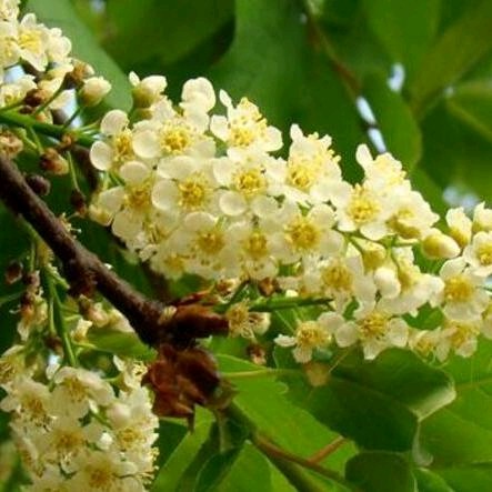 这是一种野生李子树,主要生长于北美洲,因开小白花而得名。稠李很小不能食用,其木质的花梗和树叶充满氢氰酸,一旦服用便可致人死命,其毒性会侵害人的呼吸系统,使人呼吸加速、憋闷和