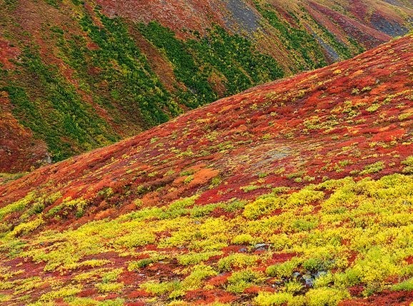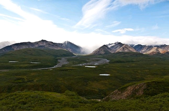 北极苔原(The Arctic tundra)是北冰洋海岸与泰加林之间广阔的冻土沼泽带,总面积1300万平方公里。它最大特点是有一层很厚的永久性冻土,厚达488米,最厚可超过600米。