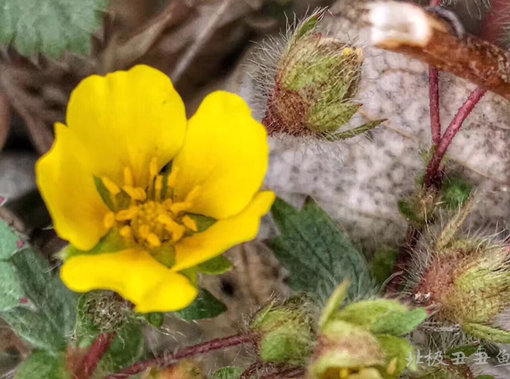 五瓣艳黄花,三叶嫩绿枝,形色说它是三叶委陵菜。。。
