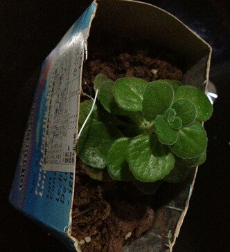 回家一时也没找着盆,而且觉得先假植一下吧,于是它在牛奶盒里安顿下来。