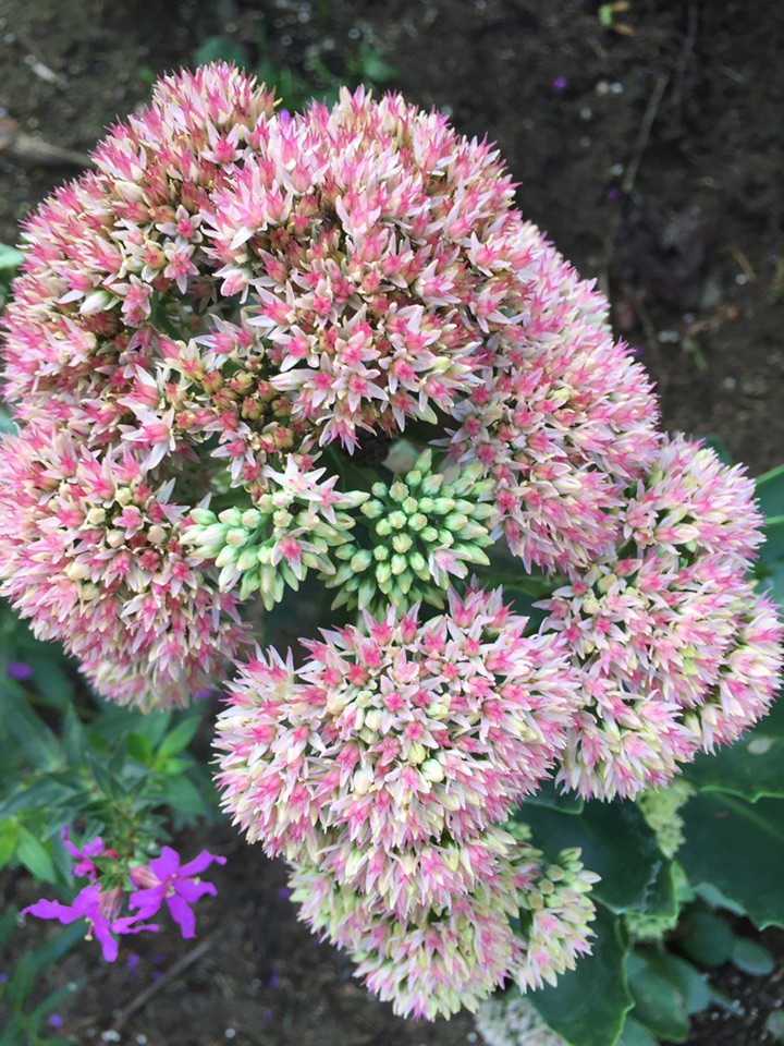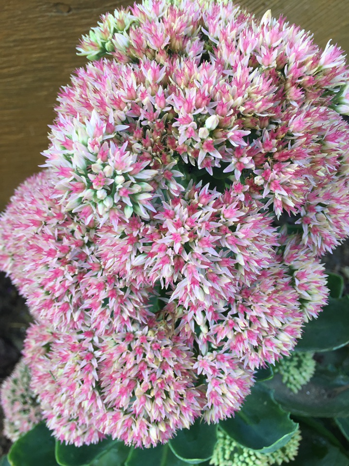 属于朴素的花儿 给秋天增添了美丽的色彩!喜欢八宝深秋时的那种颜色 我有两株 现在刚开始变色: