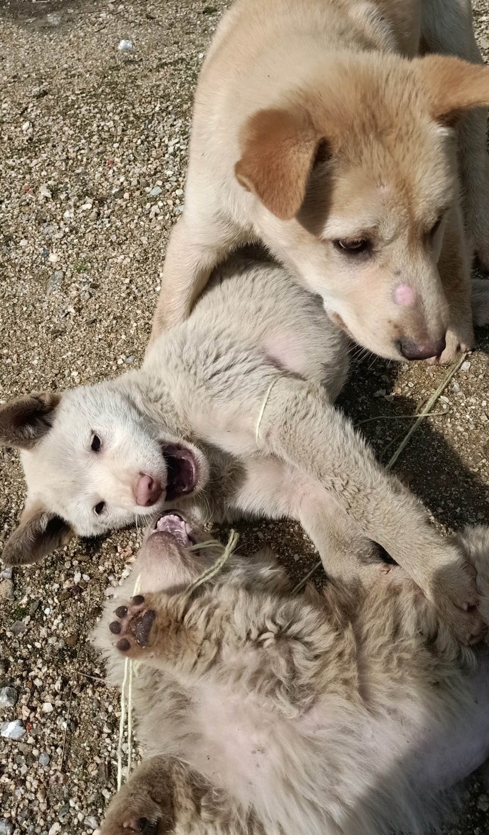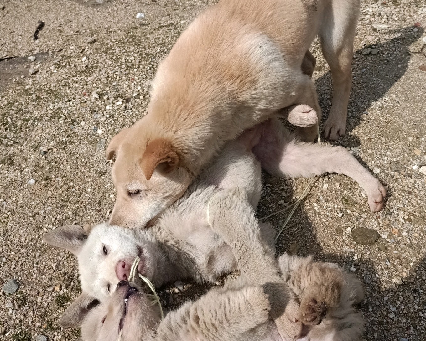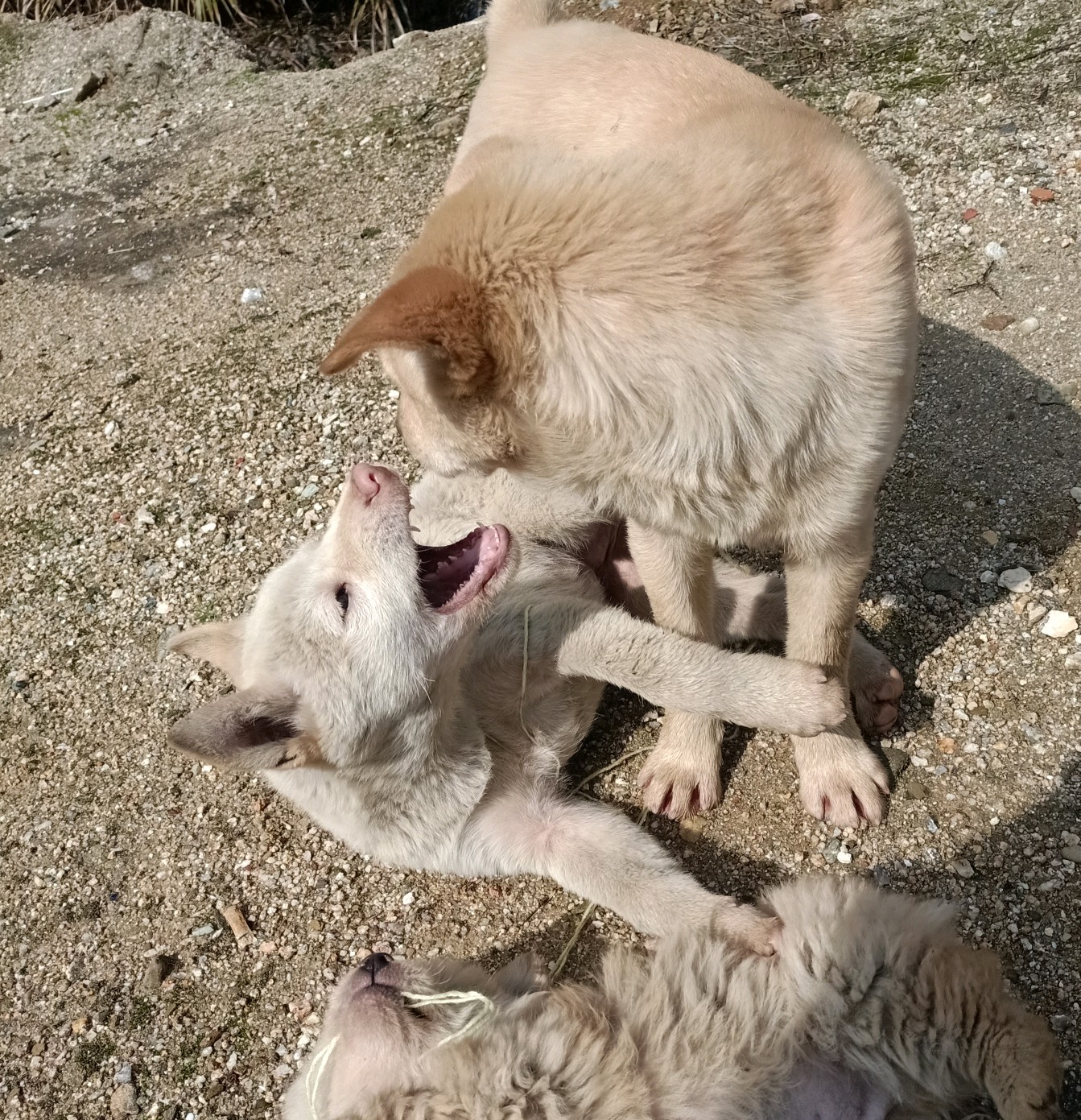 顺便告诉大家,图中的小白狗和最小的黄狗是我家的~